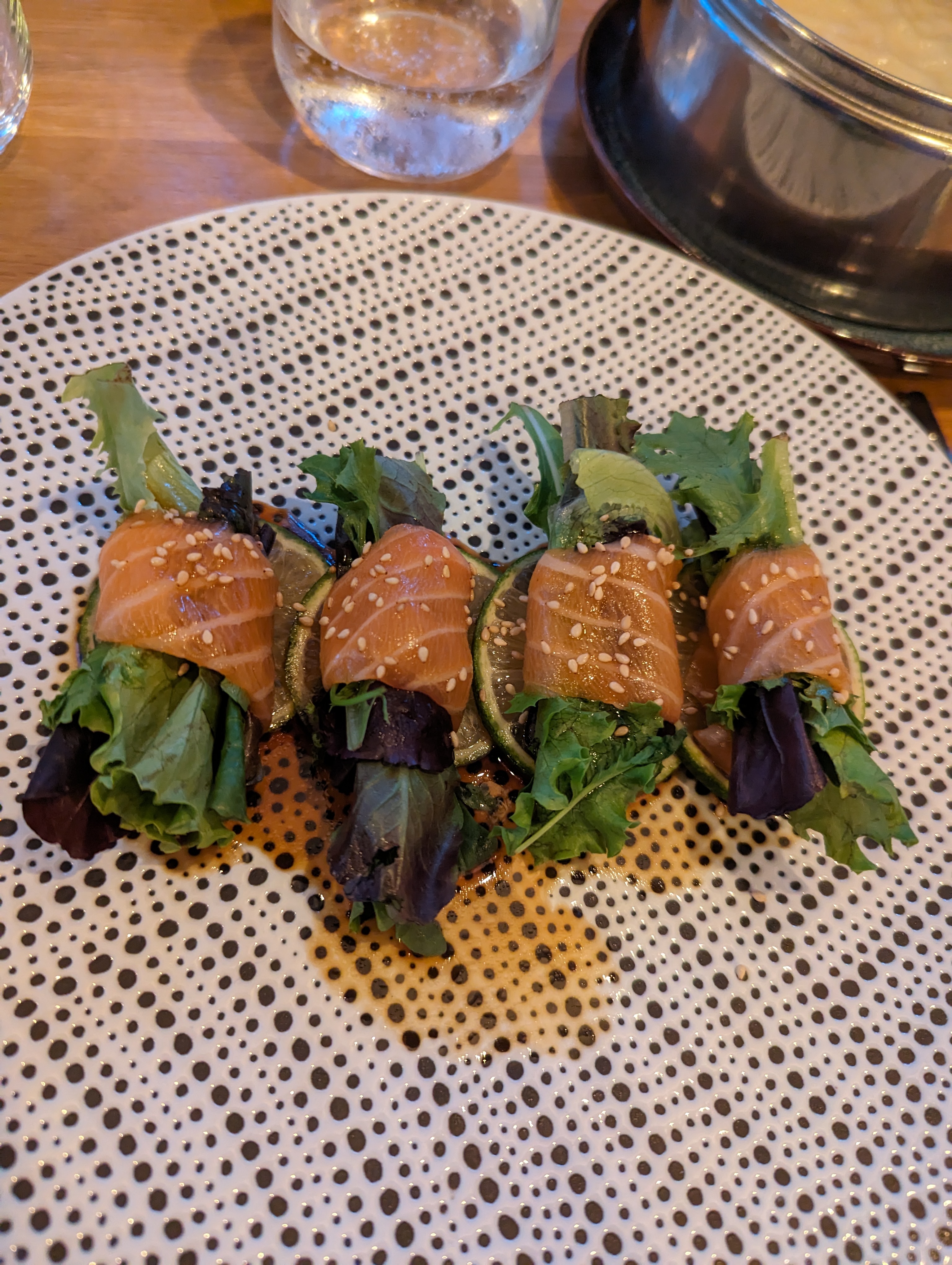 Des associations de saveurs surprenantes et bien pensées. Les produits sont frais. Les vins restent abordables. Côté amélioration pour moi, les petites sauces pimentées mériteraient d'être maison vu le prix du menu et le service un peu moins pressant.