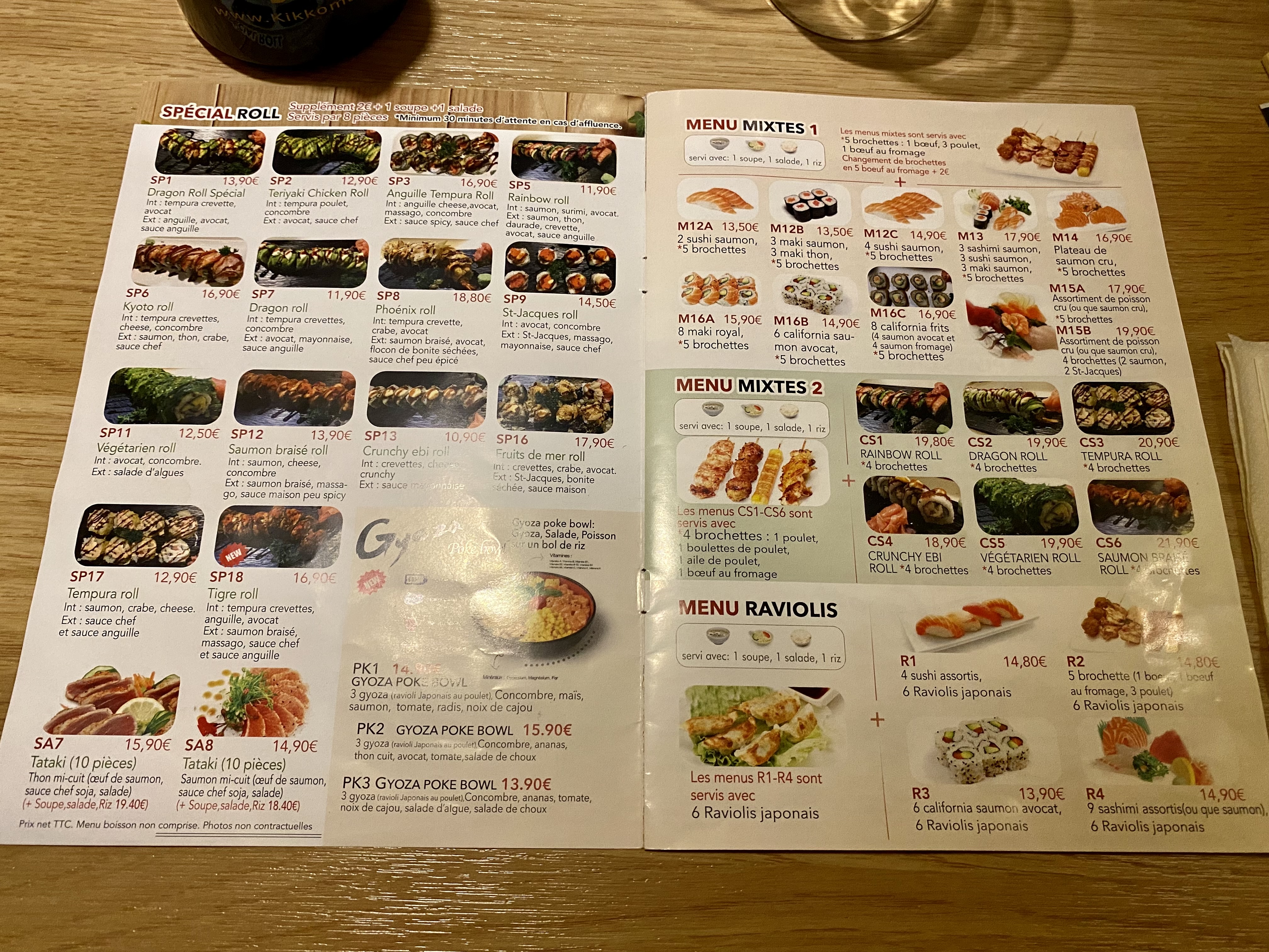 La soupe aux raviolis est mauvaise, le bouillon et les nouilles sont faits avec le sachet de nouille instantané, très salé, j’en ai été malade même si j’en ai mangé que très peu. Si ce n’est pas votre point fort la soupe il faut supprimer du menu
