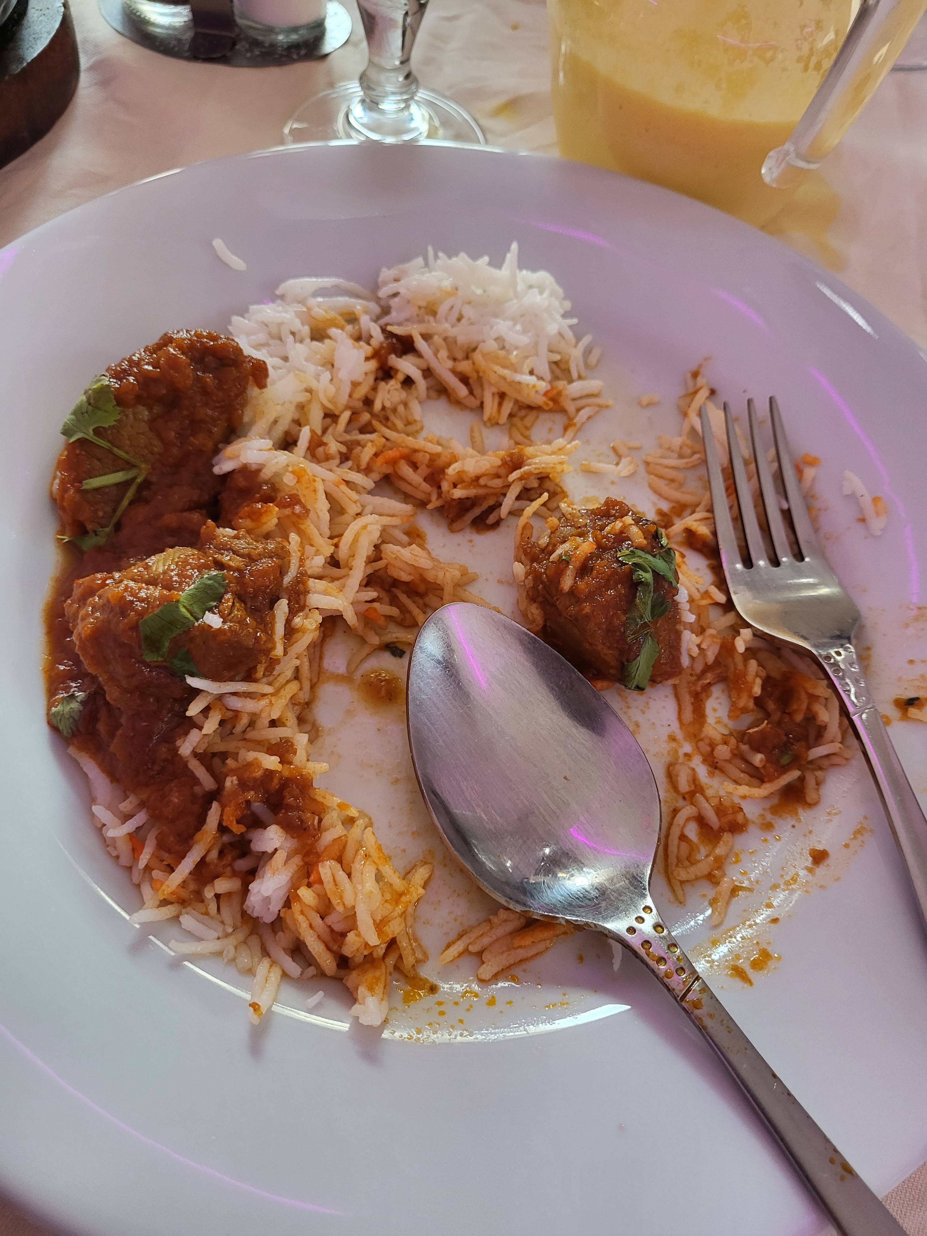 Ma copine et moi sommes en tournée en France et nous sommes tombés sur ce restaurant derrière notre hôtel que je ne saurais trop féliciter. Finalement, j'ai trouvé un repas pour contourner mon immunité aux épices accumulée en vivant du Tex-Mex pendant des années avec leur Biryani, contenant des viandes mélangées qui n'étaient rien d'autre qu'un délice enflammé. Le fils du propriétaire était l'incarnation même de l'hospitalité amicale, discutant avec nous et nous suggérant de superbes attractions locales. Merci pour l'une des meilleures expériences culinaires que j'ai jamais vécues, chez moi ou à l'étranger !