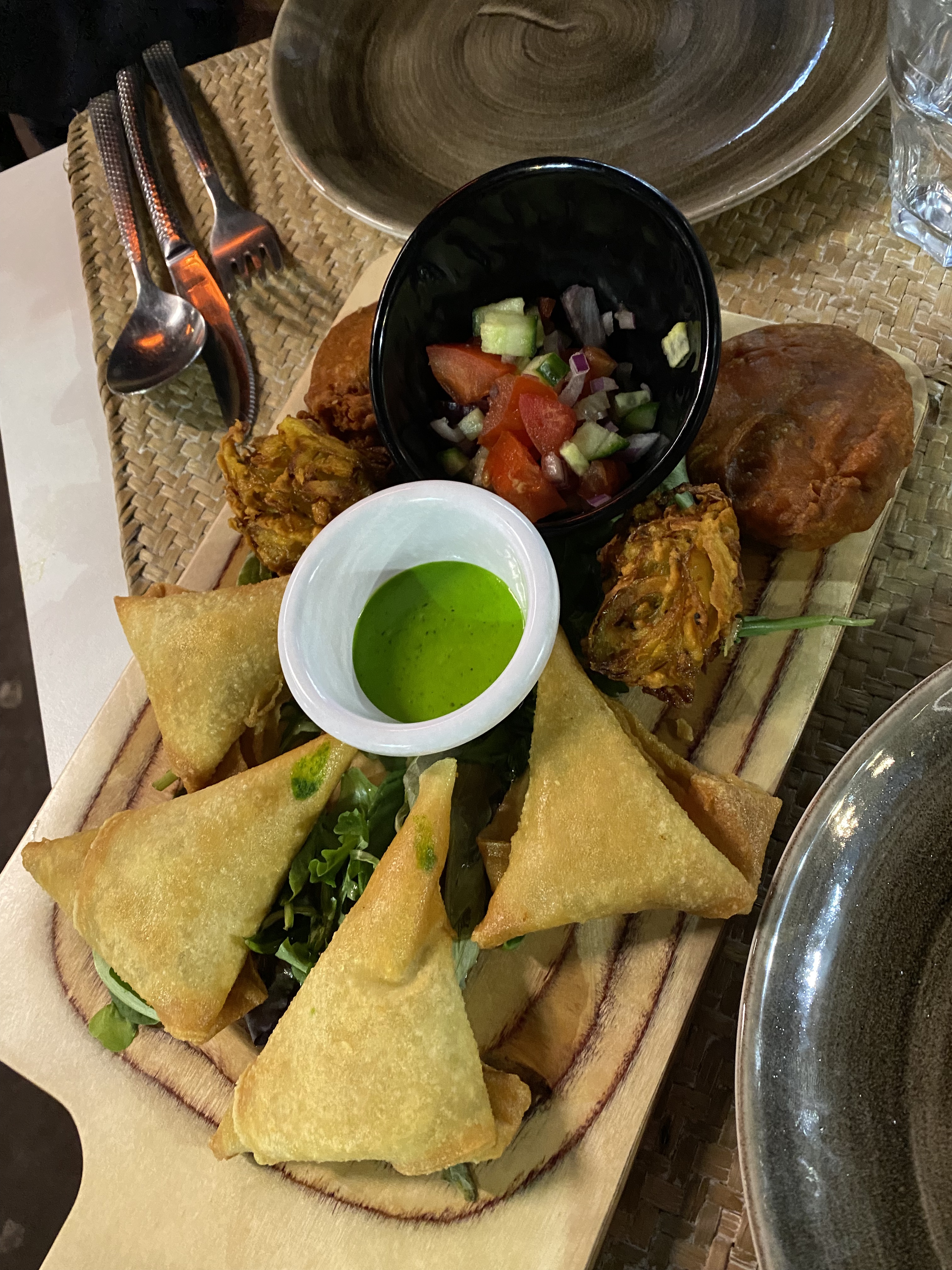Une très bonne adresse pour découvrir la cuisine Indienne. Pour accompagner notre 🍹 cocktail 🍸 nous avons demandé une assiette à partager avec un assortiement de samoussas, beignets de légumes et des naan typiques. Un large choix de plats typiques à base de curry 🍛 riz 🍚 épices grillades et légumes sans oublier les desserts 🍨. Personnel très accueillant dans un cadre très chic. Reservation très fortement recommandée.