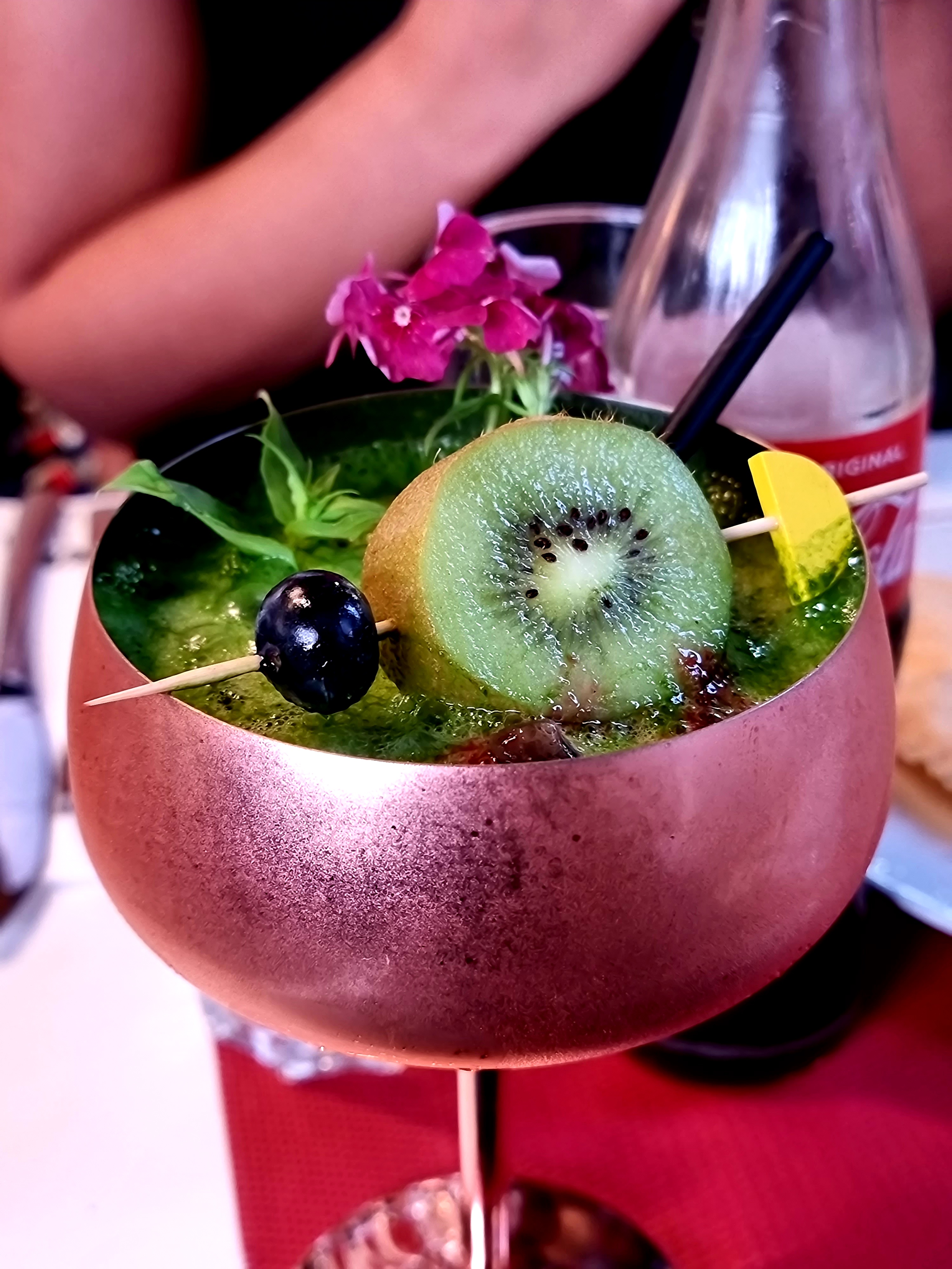 Très bon accueil à notre arrivée, le cocktail vert servi dans une coupe cuivrée été juste délicieux, nous l'avons beaucoup apprécié. Avec un goût, de reviens y! Pour ce qui est du repas : présentation soignée, Très bon, très copieux et nous avions même du mal à finir et ils nous ont proposé spontanément un doggi bag. Le personnel et le patron très accueillants, soucieux du bien-être et bon déroulement du repas . Nous avons passé une excellente soirée de ce fait!