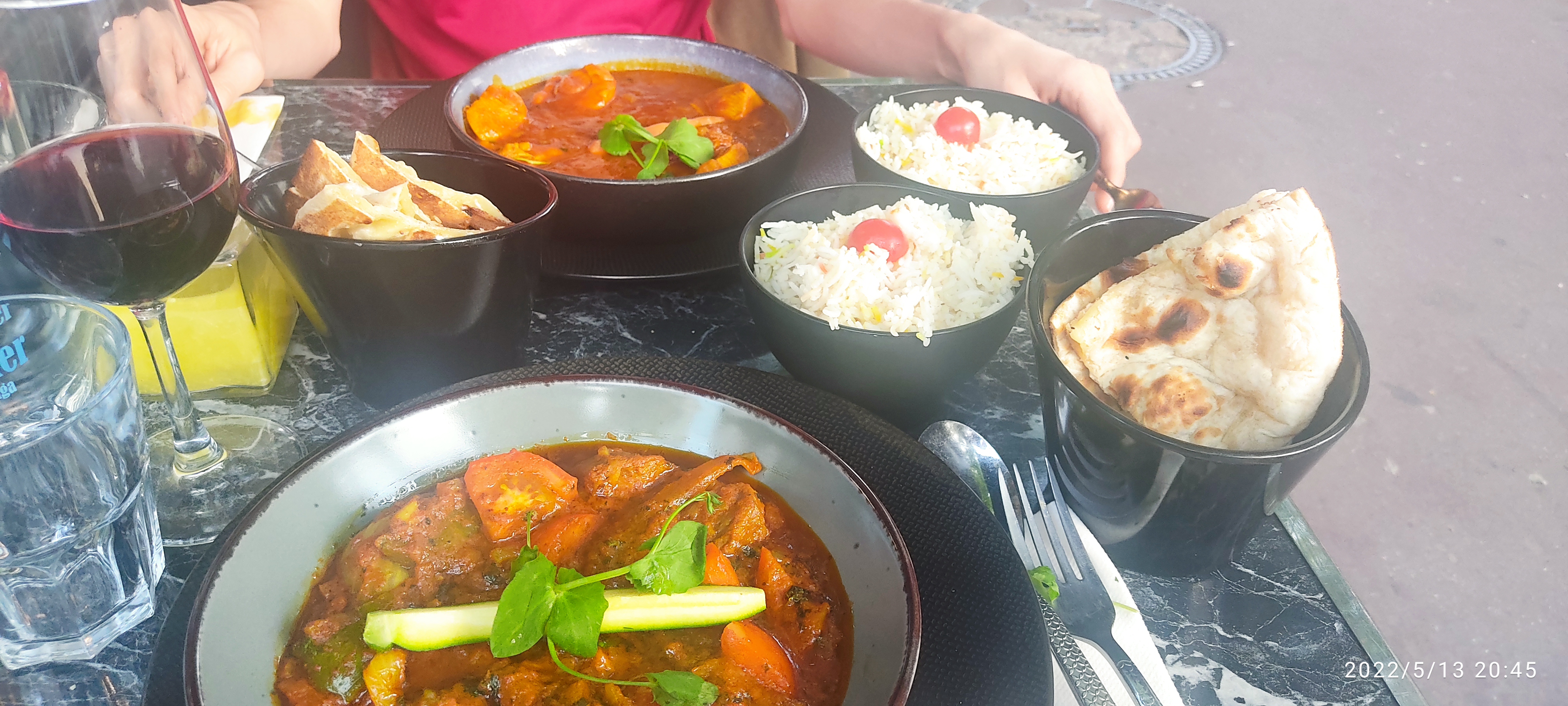 Très bon indien ! 6€ l’entrée, 16€ un curry :)