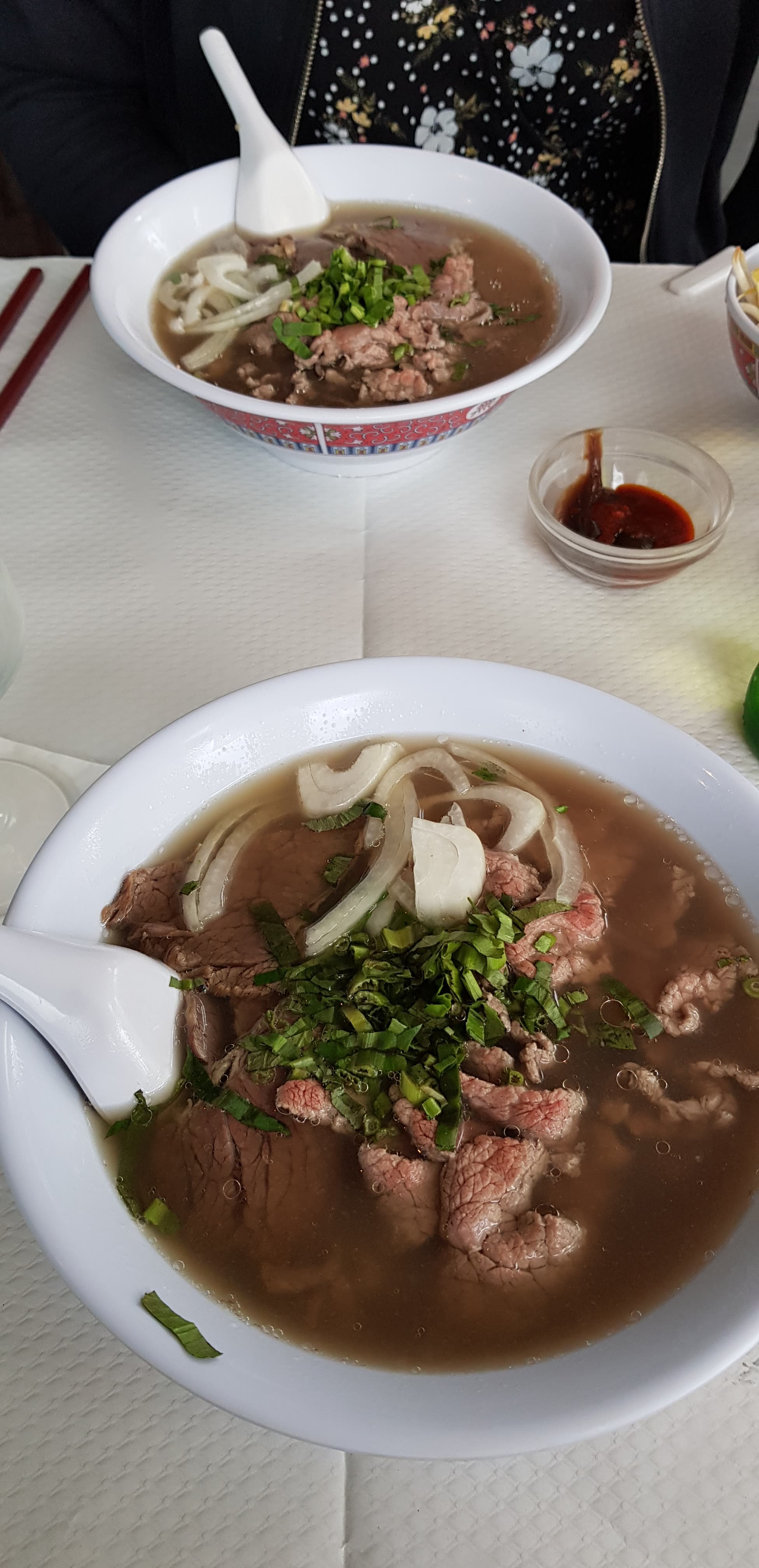 Les nappes oranges sont extrêmement sales voire très dégueulasses, elles ne sont pas changés, ni désinfectés ni nettoyés ! 2 semaines plus tard je reviens je constate que les tâches sauces sont toujours sur les nappes oranges ! Après avoir informé cela aux responsables aucun changement à fuir, aucune hygiène compte tenu du COVID et des variants. La soupe tokinoise PHO très peu généreux en pâtes et en viandes (petit bol) au vu du prix 9,50€ j'avais l'impression d'avoir un menu enfant et c'était fade pas d'assaisonnement ! Le restaurant à côté c'est un grand bol à 9,80€, avec beaucoup plus de pâtes de riz et de viandes (3 boulettes de boeuf au lieu de 2). J'ai eu une personne au téléphone le 18/07/2022 accusant les clients de s'essuyer les doigts sur les nappes oranges car si ce sont bien des doigts il y aurait des traces de doigts vu c'est de la sauce donc ce sont les clients qui sont de très gros porcs, et les nappes sont lavés une fois par semaine (l'horreur quand nous avons entendu cela, surtout pas très hygiénique au vu du contexte actuel) la réponse pas très honnête du responsable ! Manque de respect total envers les clients pour se dédouaner du nettoyage et désinfection des nappes oranges par le restaurant, je ne reviendras plus avec ma famille, pour un total de 132,70€ terminé !