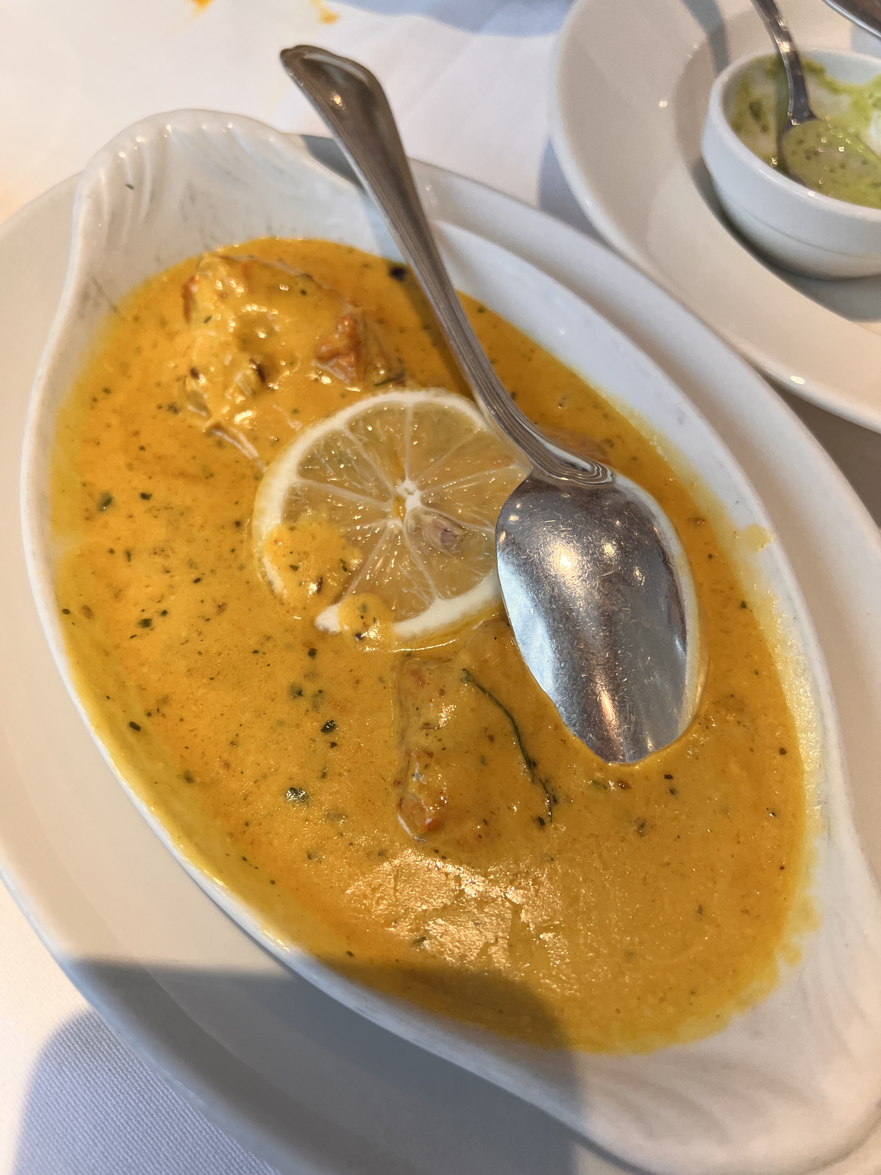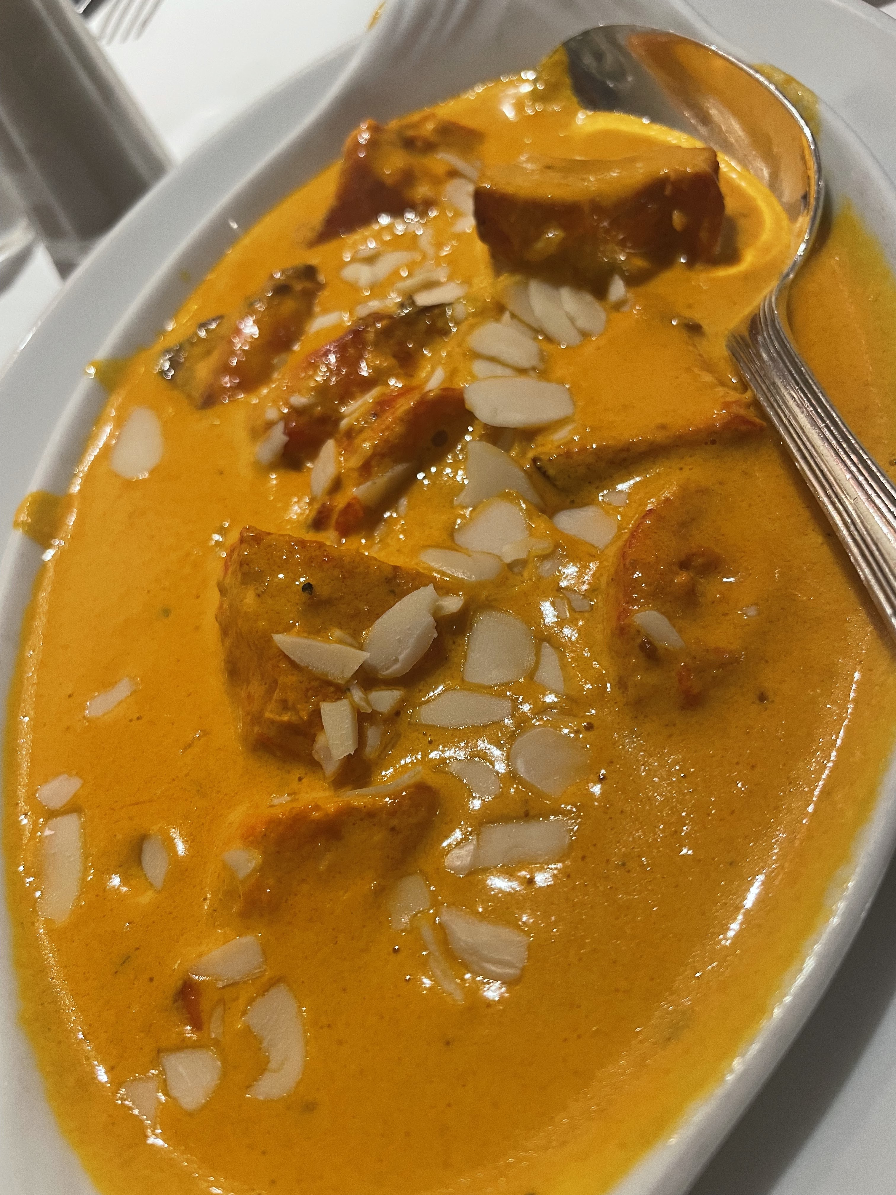 Le butter chicken est exceptionnel. Pour moi les prix sont contenus, vous pouvez prendre deux naans, une spécialité et un accompagnement pour deux ( c’est quand même copieux ) et je le redis, le butter chicken est super bon.