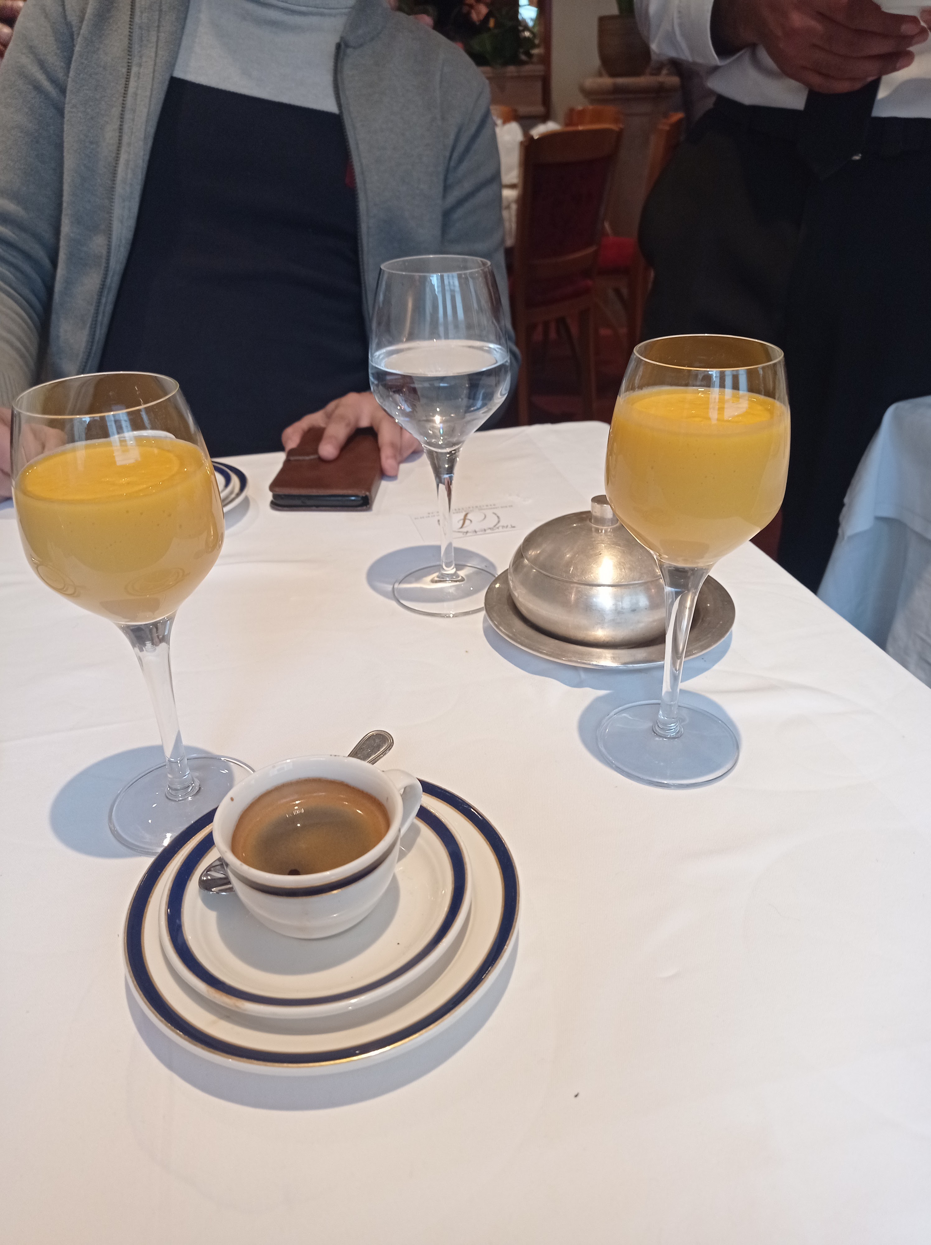 Nous avons déjeuner à 4, le cadre magnifique les plats excellent les serveurs très souriant à l’exception du monsieur avec une moustache qui était pas très aimable, j’enlève une étoile pour cela…..