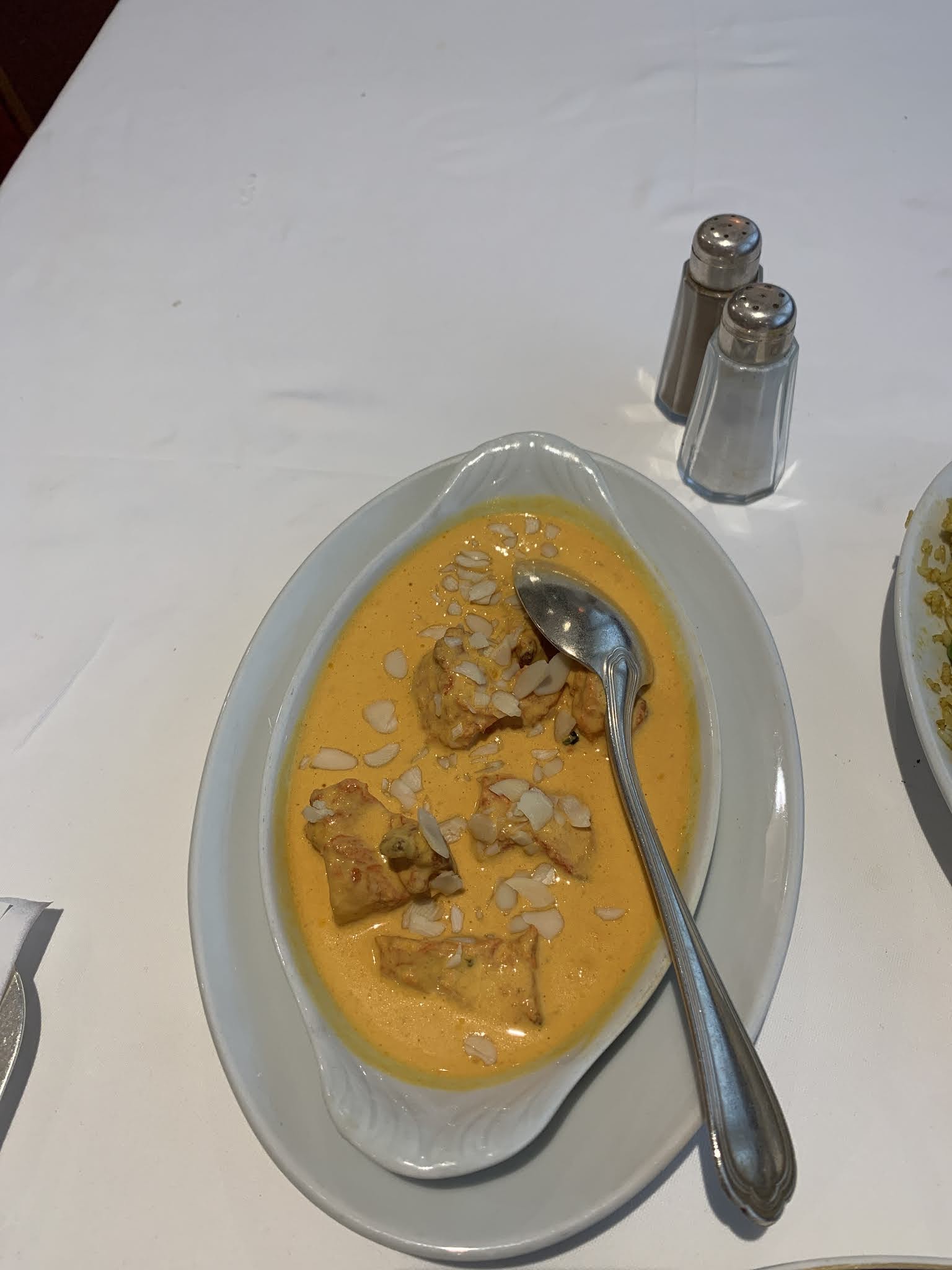 Voilà la cuisine indienne la plus insipide qu'il m'ait été donné de manger. Les sauces avaient une très belle texture mais n'avaient aucune saveur. J'ai été surprise en entrant dans cet établissement lumineux et propre, de ne pas me trouver saturée d'odeurs d'épices comme dans la plupart des restaurants indiens. Pour cause, j'ai le sentiment qu'ils en utilisent juste assez pour colorer leurs sauces. Les nans étaient très bons et fins, de même que les samossas, nous avons regretté de n'en trouver que 2 alors qu'ils sont loin d'être gros. Ils on été servis après nos plats. L'accueil et la prise de commande ont été particulièrement austères voire froids, le service s'est heureusement détendu en cours de repas. La climatisation très froide par un jour de pluie était désagréable et a refroidi nos plats aussitôt servis. Manger fade et froid à ce prix-là fut une expérience que je ne renouvellerai certainement pas.
