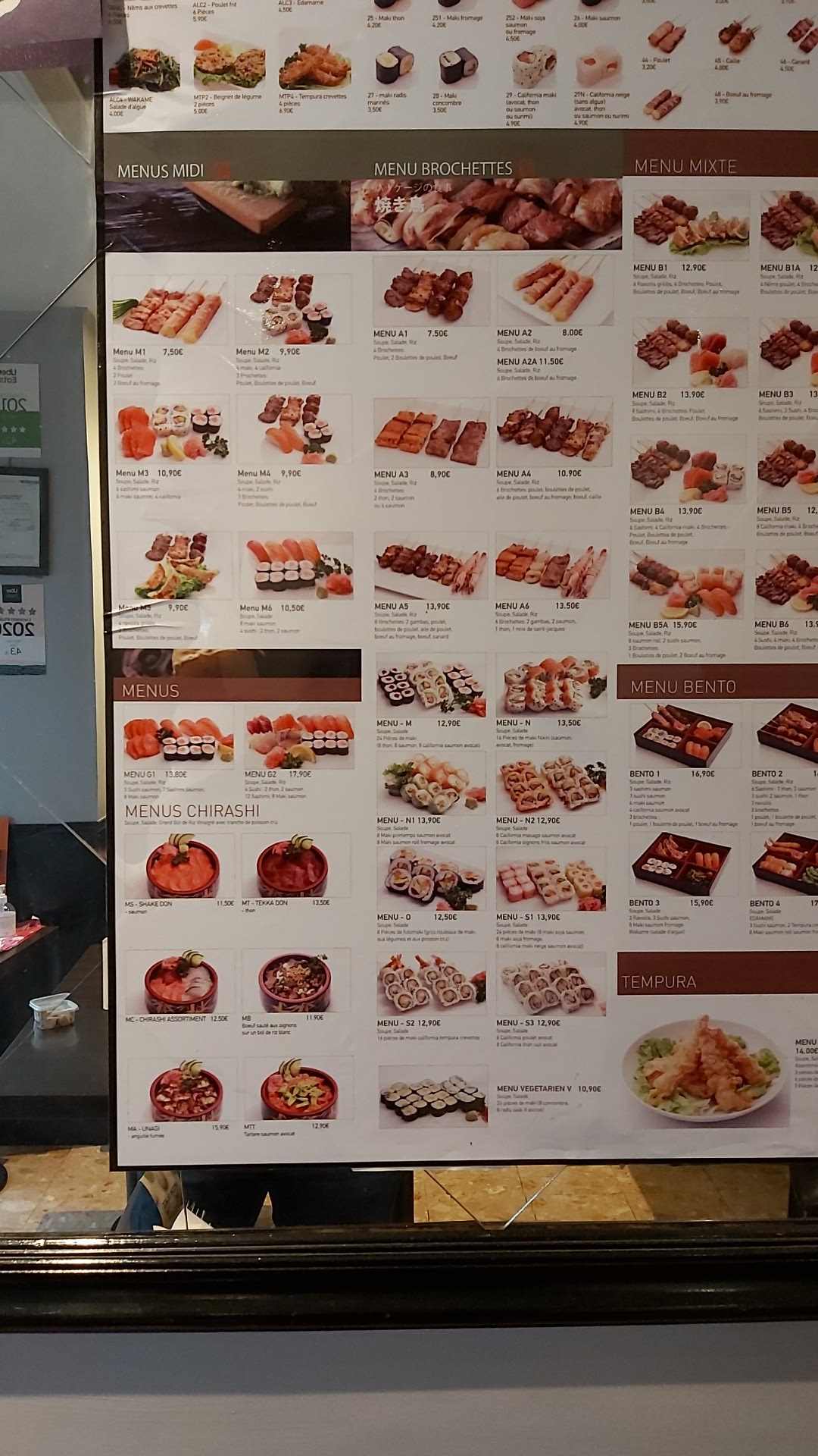 Astuce: il y a des menus moins chers et plus copieux sur la dernière page de la carte.