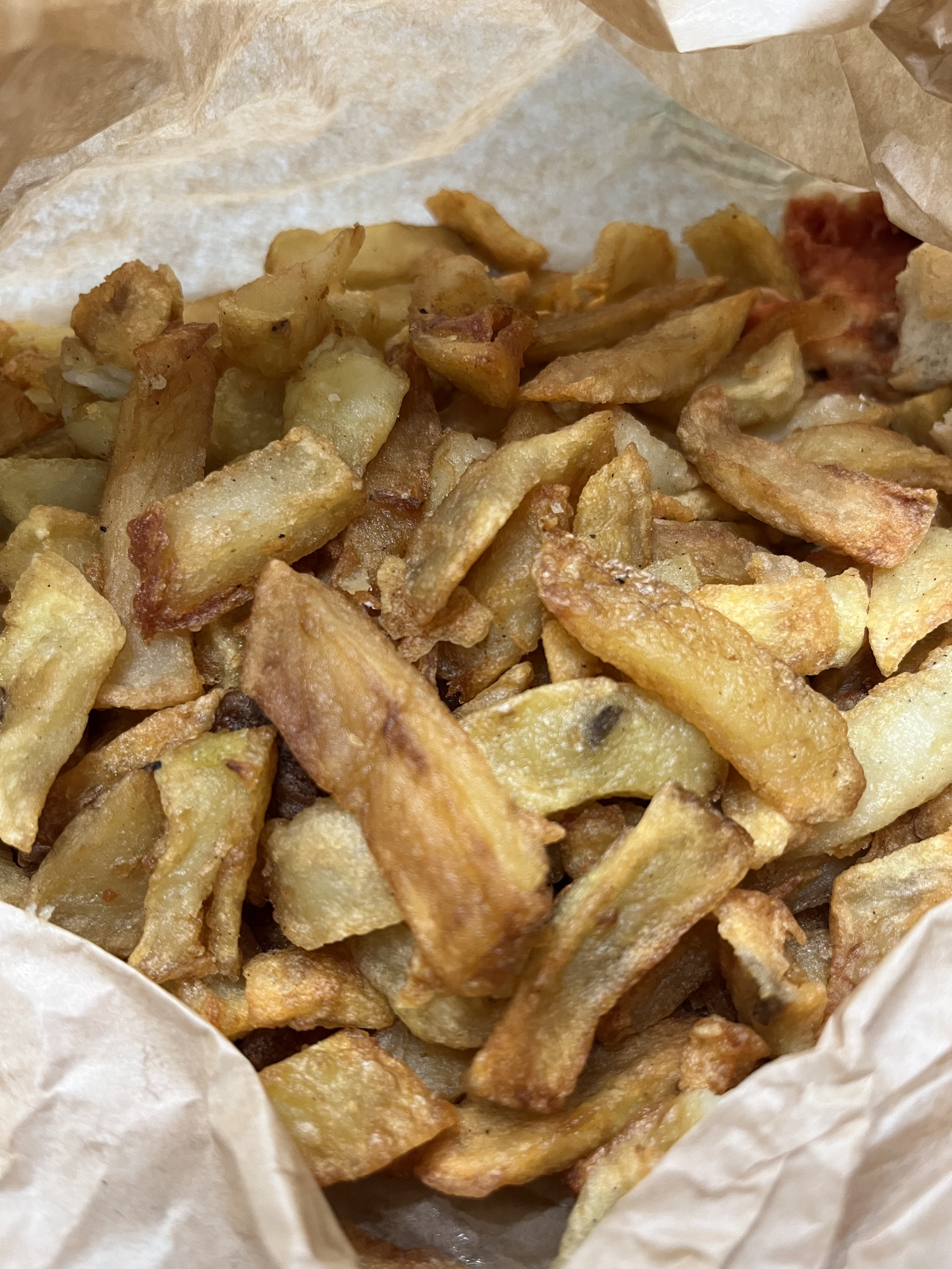 Bah je ne comprends pas non plus les avis négatifs, les frites sont dingues parmi les meilleures que j'ai mangées, ne vous fiez pas aux photos. Trop bon. .