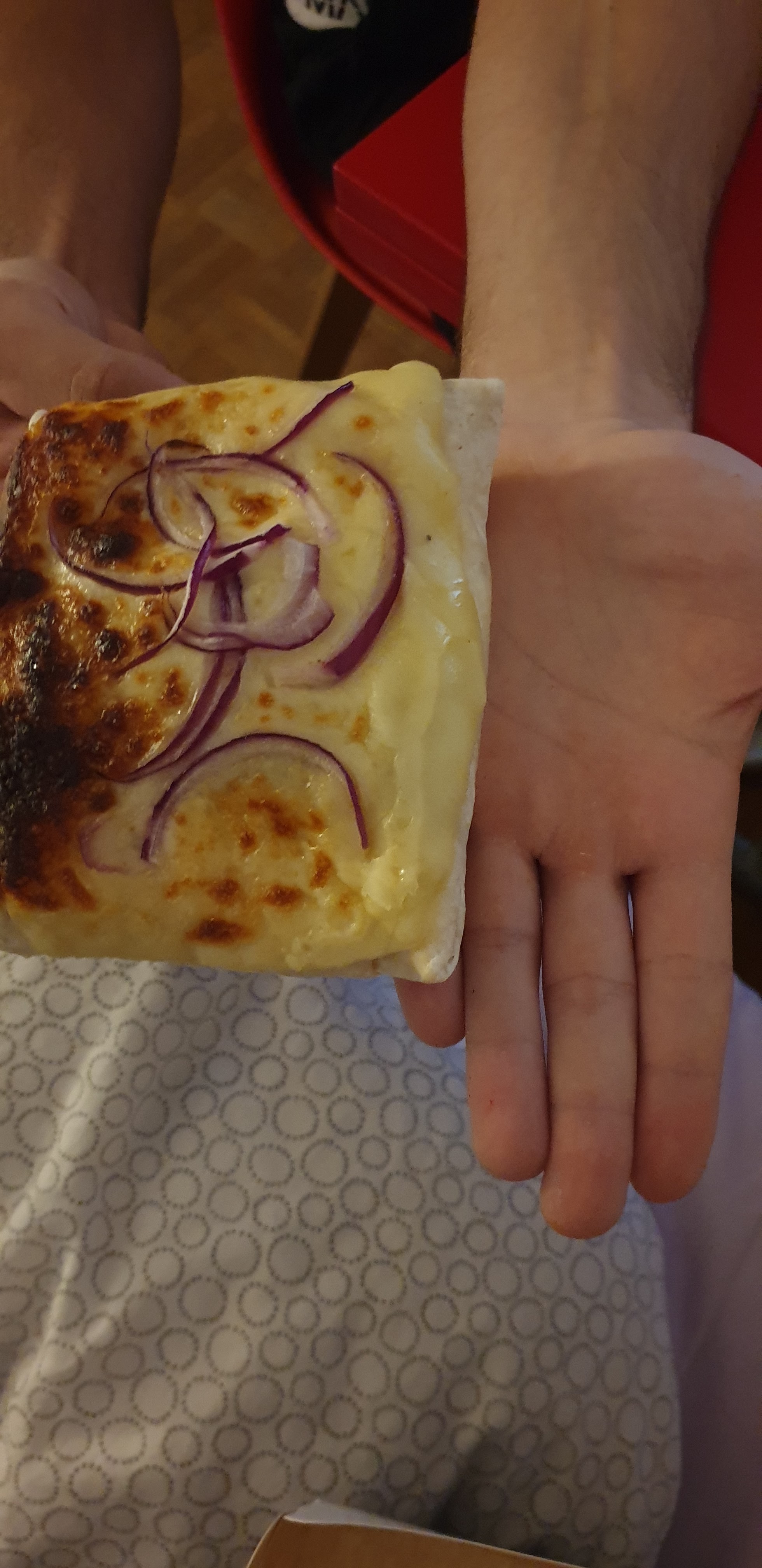 Il me semblait pas avoir commandé un tacos enfant mais j’ai reçu ça. Je précise que je suis une fille avec de petites mains… pour le prix c’est grave