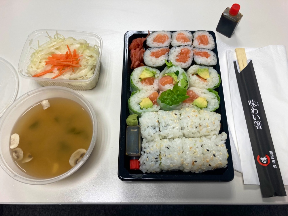 Restaurant japonais qui propose la livraison. Si le plateau de makis ainsi que les accompagnements (soupe miso et salade de chou) étaient corrects, le livreur n’avait pas prévu la machine CB. Par chance, j’ai trouvé suffisamment d’espèces pour régler mais sinon, la situation eût été compliquée… De plus, ils ont mis par défaut de la sauce sucrée alors que je ne jure que par la sauce salée !