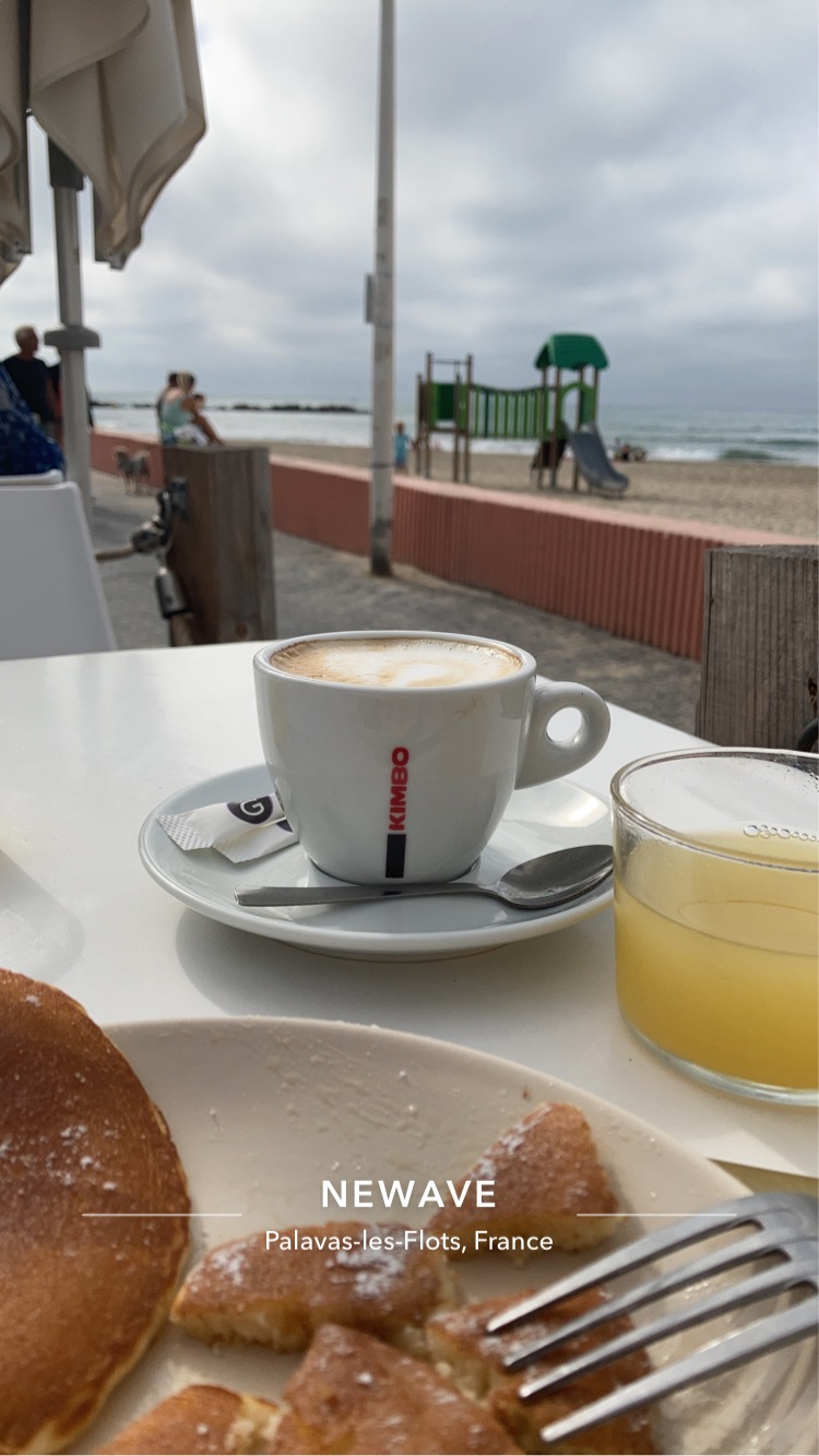 Superbe lieu, manger presque au bord de la mer. J ai pris un peu déjeuner (formule) café, jus d orange, pancake. Ce fut un moment très agréable. On y va pas pour s en mettre plein le bide….mais pour apprécier le cadre, la terrasse. L avantage énorme c est de pouvoir surveiller ces enfants qui font de la balançoire tranquillement avec un café.