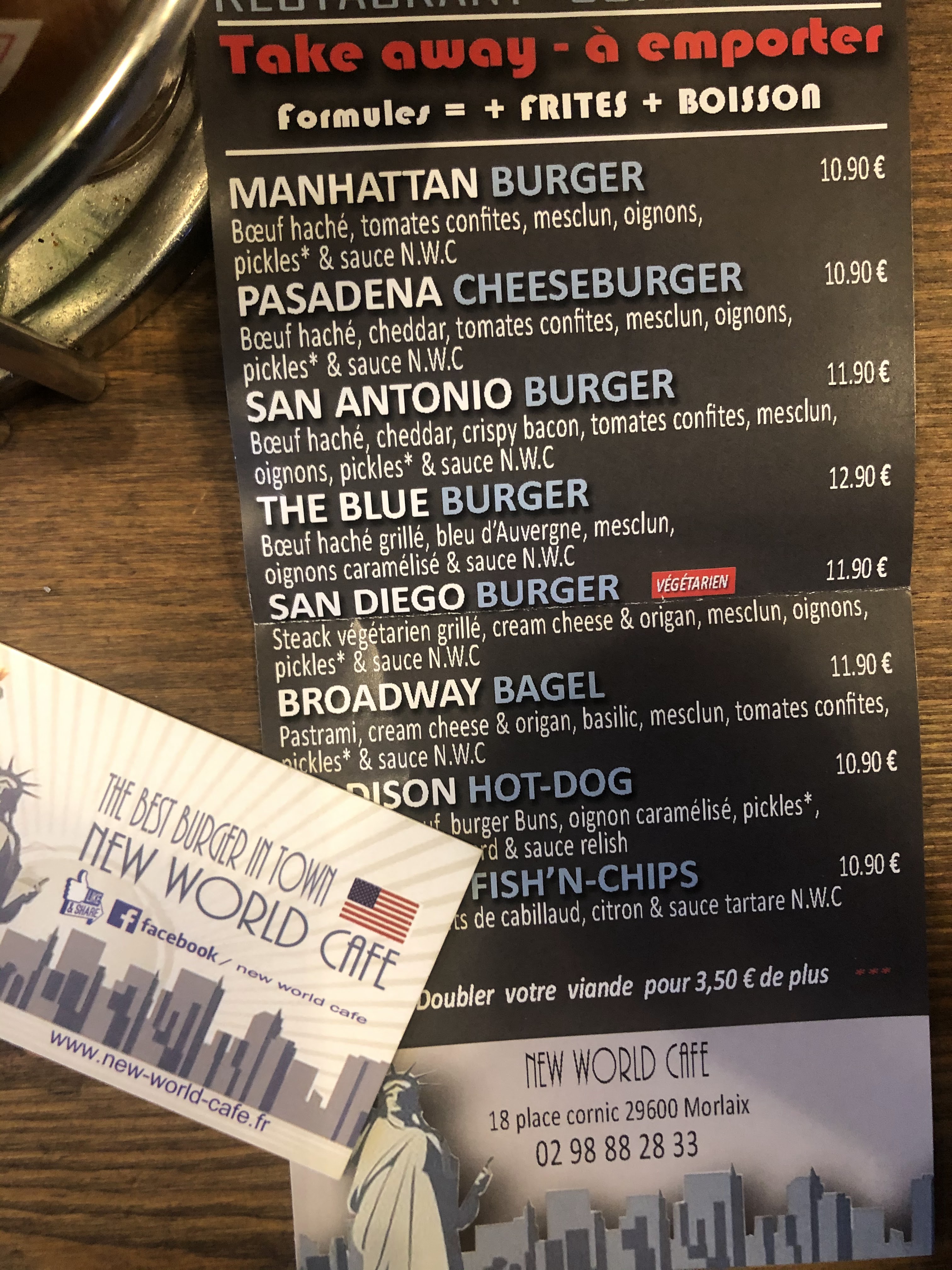 Nous étions à Morlaix pour visiter, nous cherchions un restaurant et nous nous sommes arrêtés devant cet endroit, grand bien nous a pris,un patron hyper sympa,des burgers exceptionnels, le San Antonio notamment, service rapide, bref je recommande sans modération Merci pour cette tranche de vie