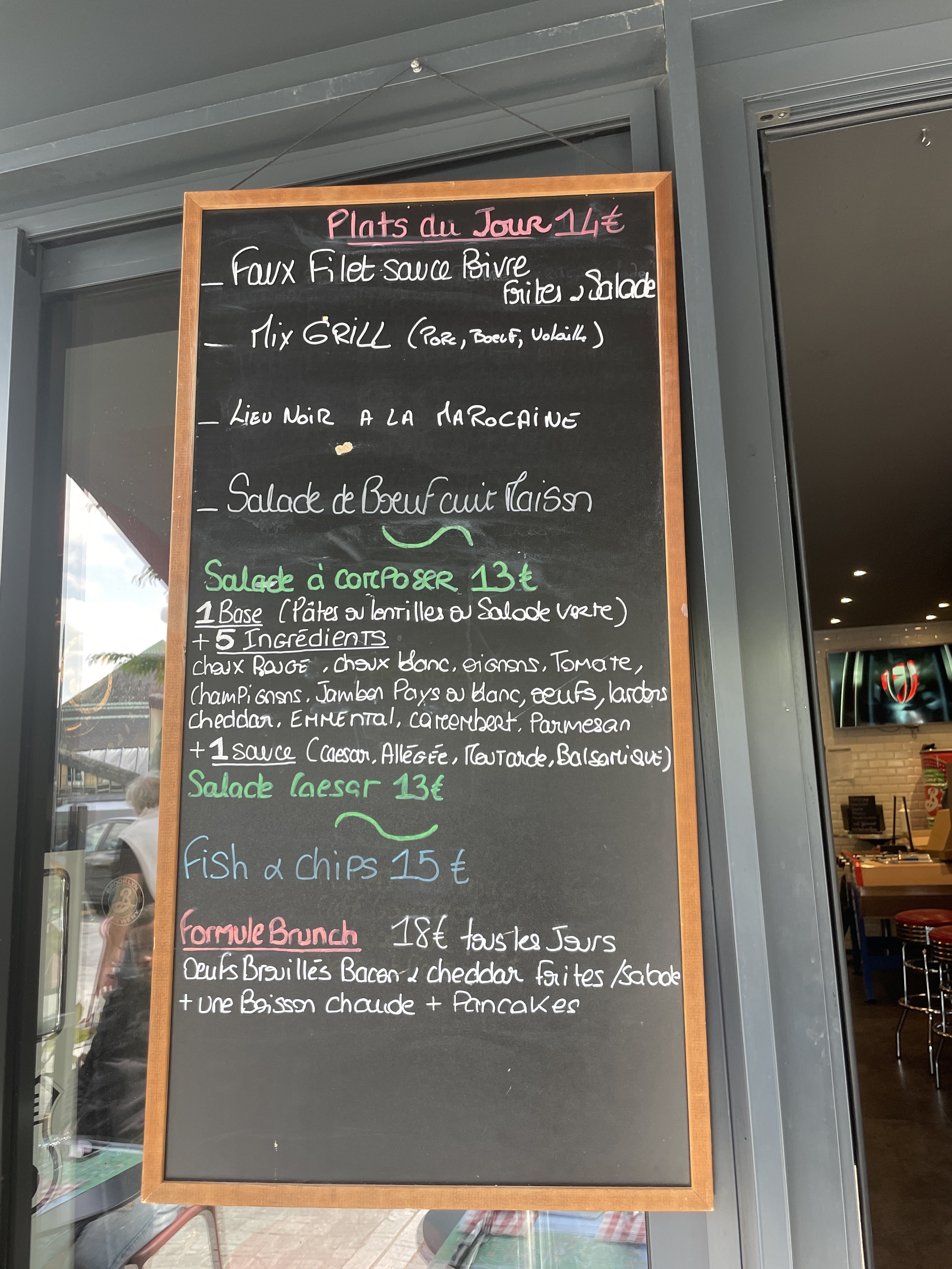 C’est tout juste correct. Pour 18€, un brunch composé d’une boisson chaude, d’œufs brouillés sur lesquels sont posées 5 lamelles de cheddar, des frites sans plus qui ne m’ont pas l’air d’être maison, une petite salade, et des pancakes farineux… pour 13€, un croque saumon bon, et des frites sans plus. Le service est en revanche agréable.