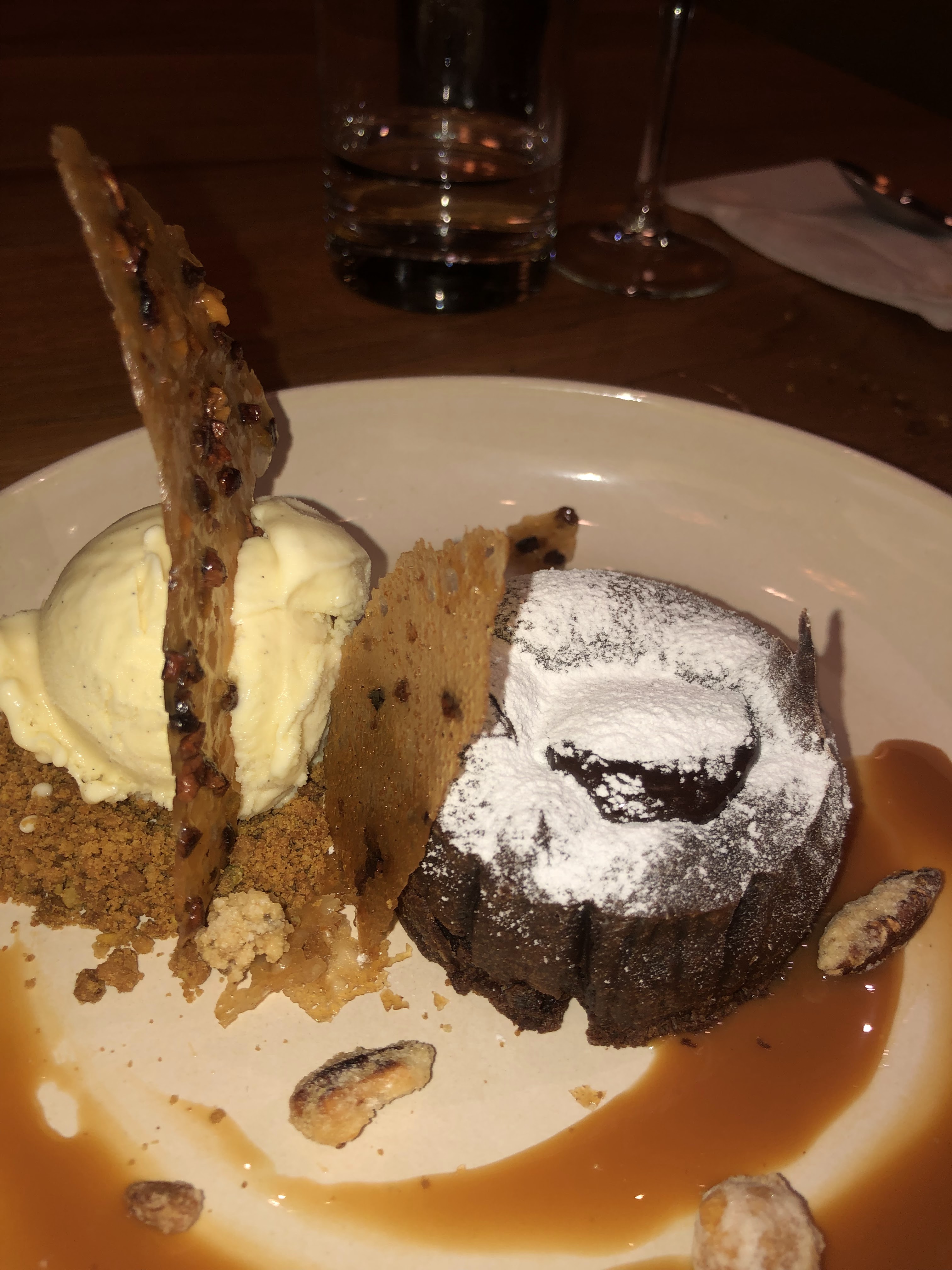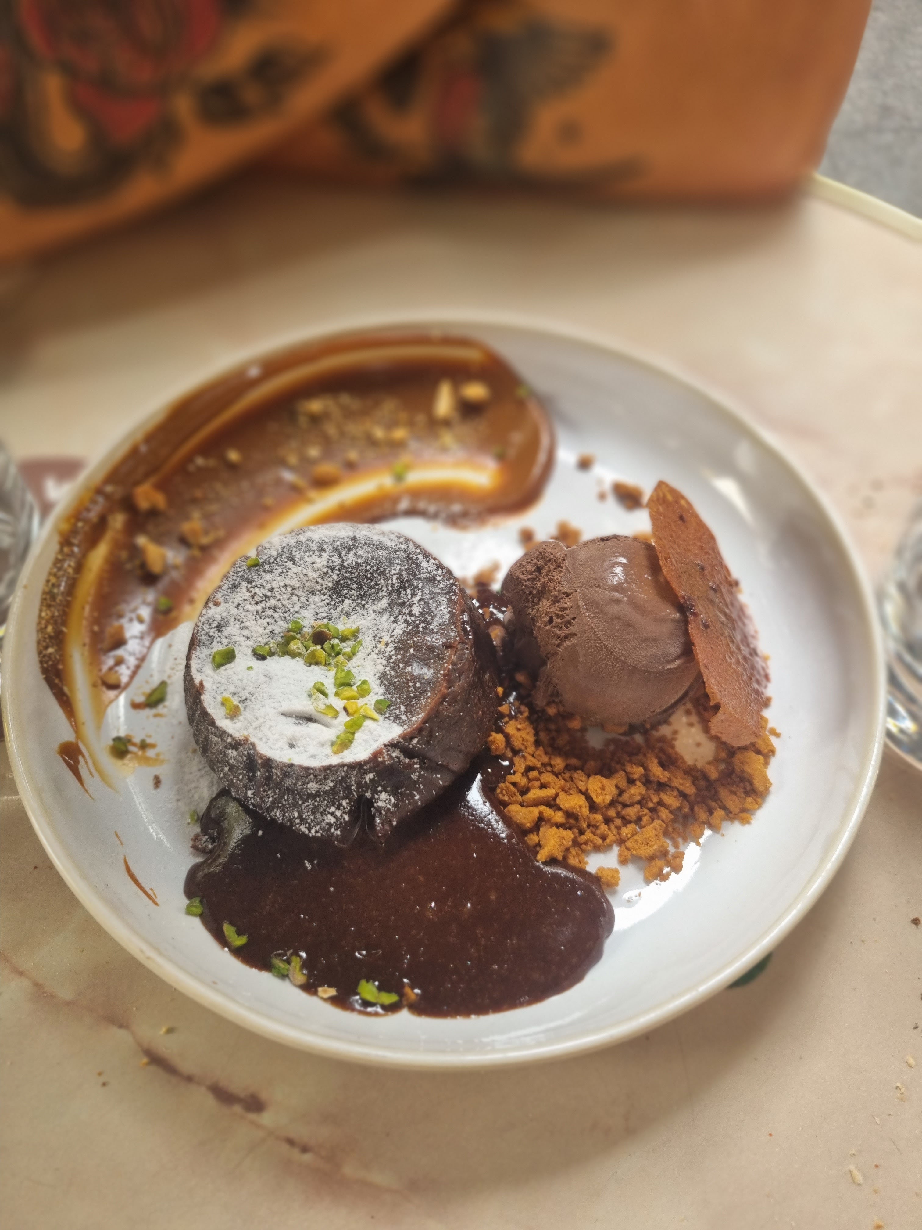 Restaurant testé en soirée, nous avons pris la burrata en entrée, le suprême de poulet et ses pommes de terre grenailles et le tartare de bœuf au couteau en plat et le cœur coulant en dessert. Les produits étaient bons, un peu cher tout de même (comptez environ 40 euros entrée/plat/dessert).