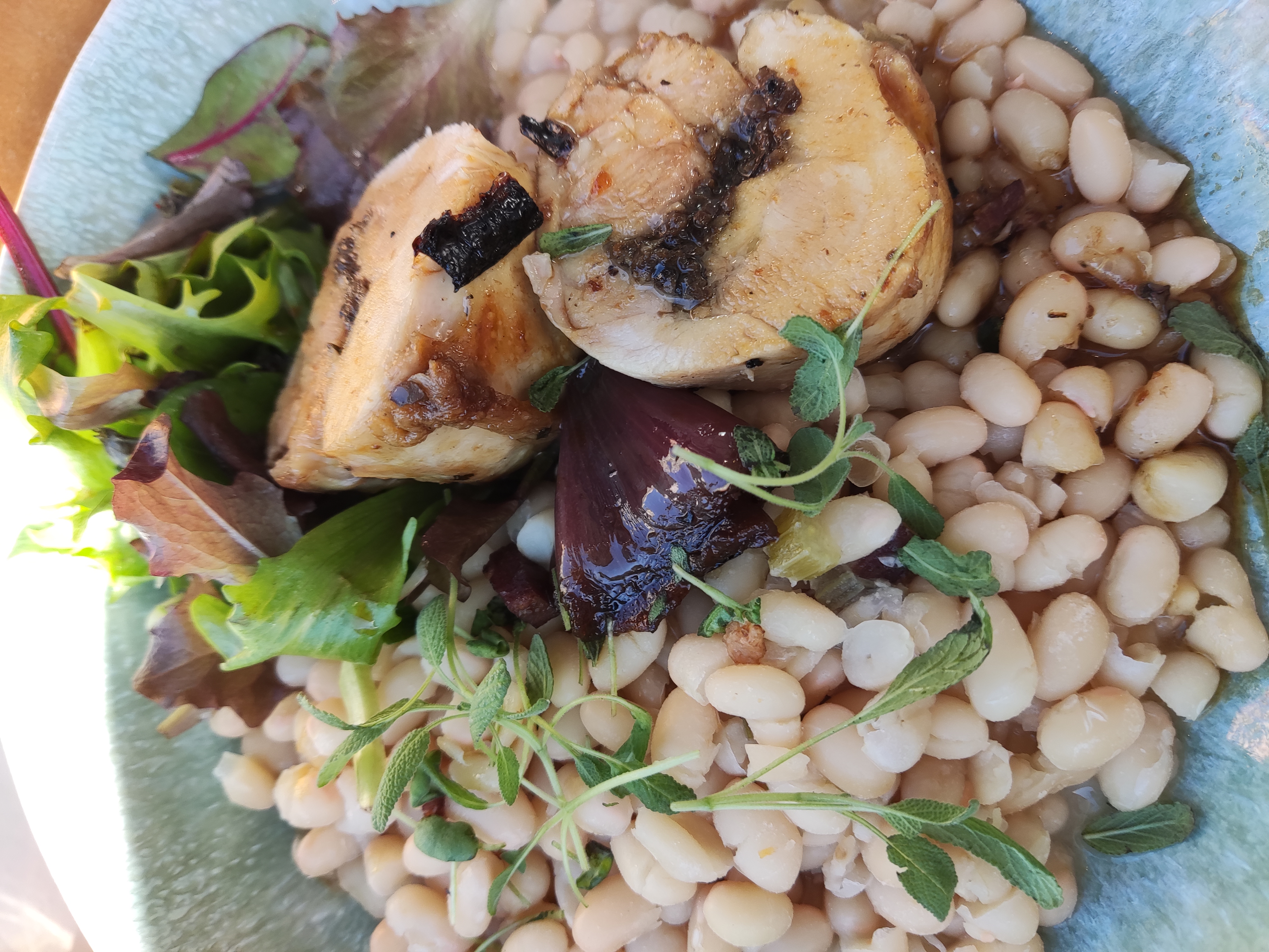 Nourriture fraîche, très bons choix. J'ai eu le poisson du jour et ma mère la salade César. Leurs desserts sont aussi tellement bons !! S'asseoir sur la terrasse pour déjeuner ici était une belle idée.