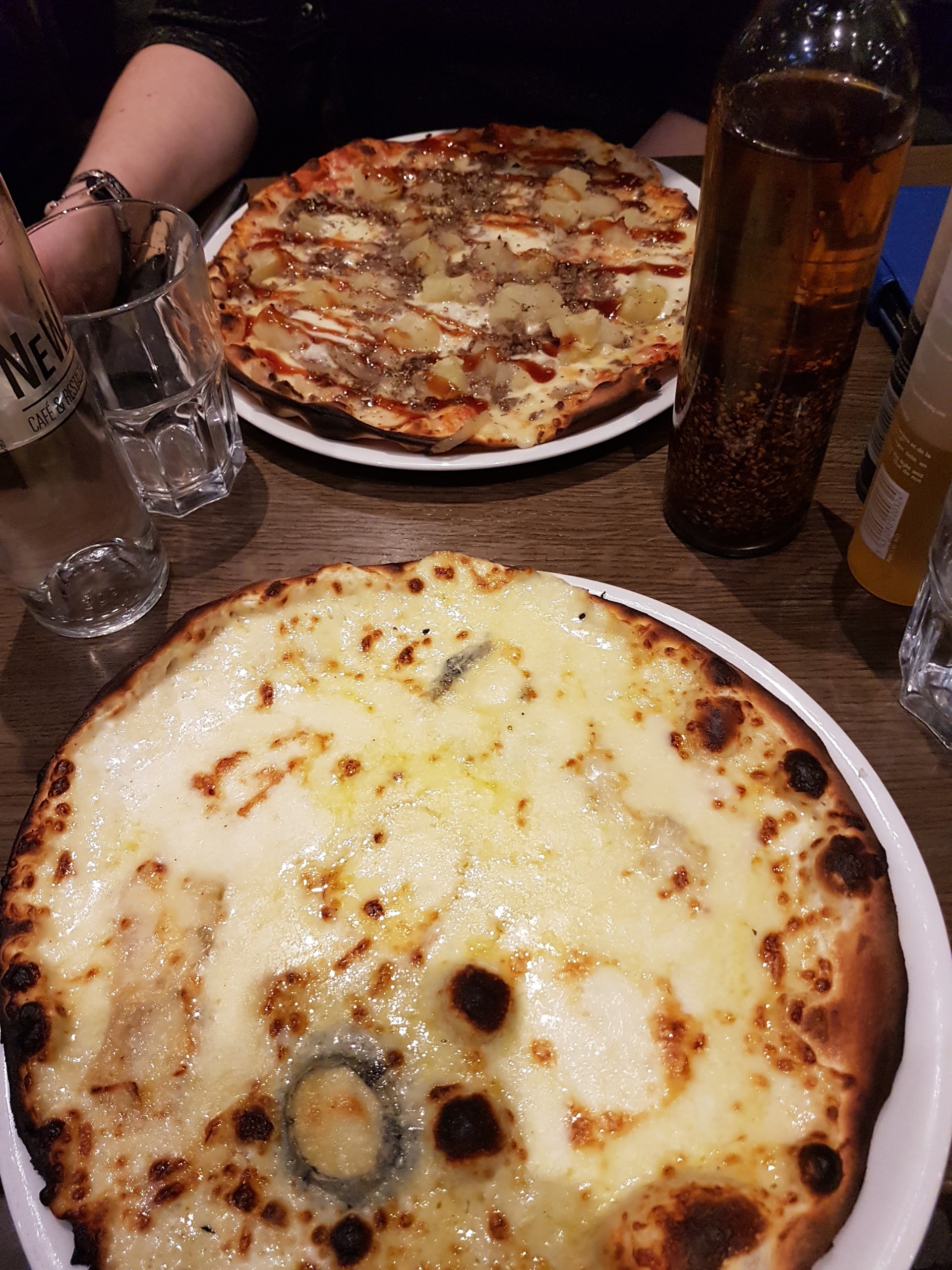 Une découverte à deux pas de la mairie de Tours. J'ai eu l'occasion de diner en terrasse avec les derniers rayons de soleil. Le service est rapide, les serveuses souriantes et ma commande a été prise rapidement. Une bière et je décide de tenter la mozzarella au paprika à 6,50 en entrée : copieux et bon, avec un lit de salade. J'enchaîne sur une pizza au poulet, fondant et garniture généreuse. Vraiment bon ! Allez y