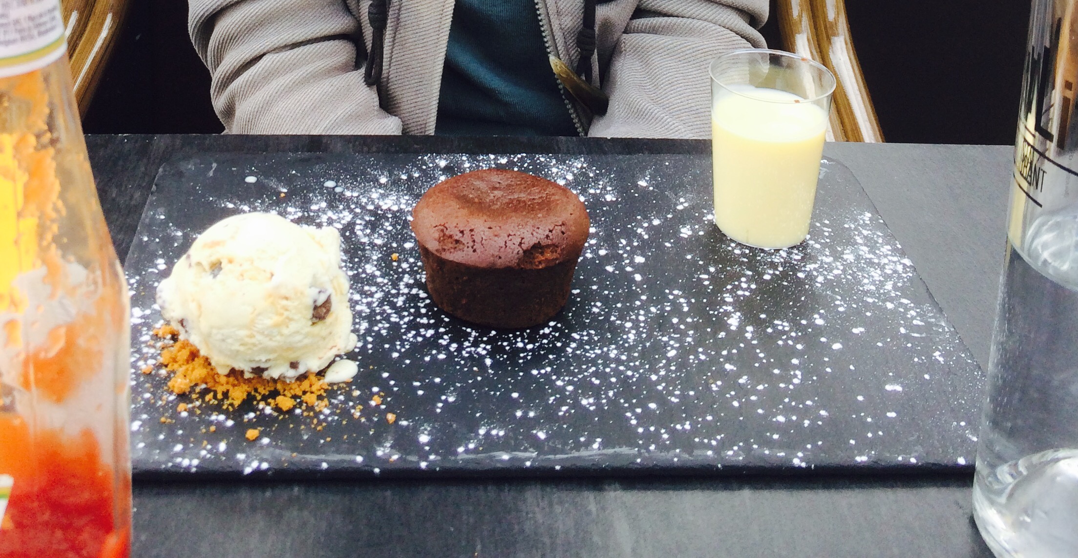 Excellents plat et dessert du jour, pain frais, prix raisonnables et un serveur très sympa et attentif! (En photo: le mi-cuit commandé en dessert)