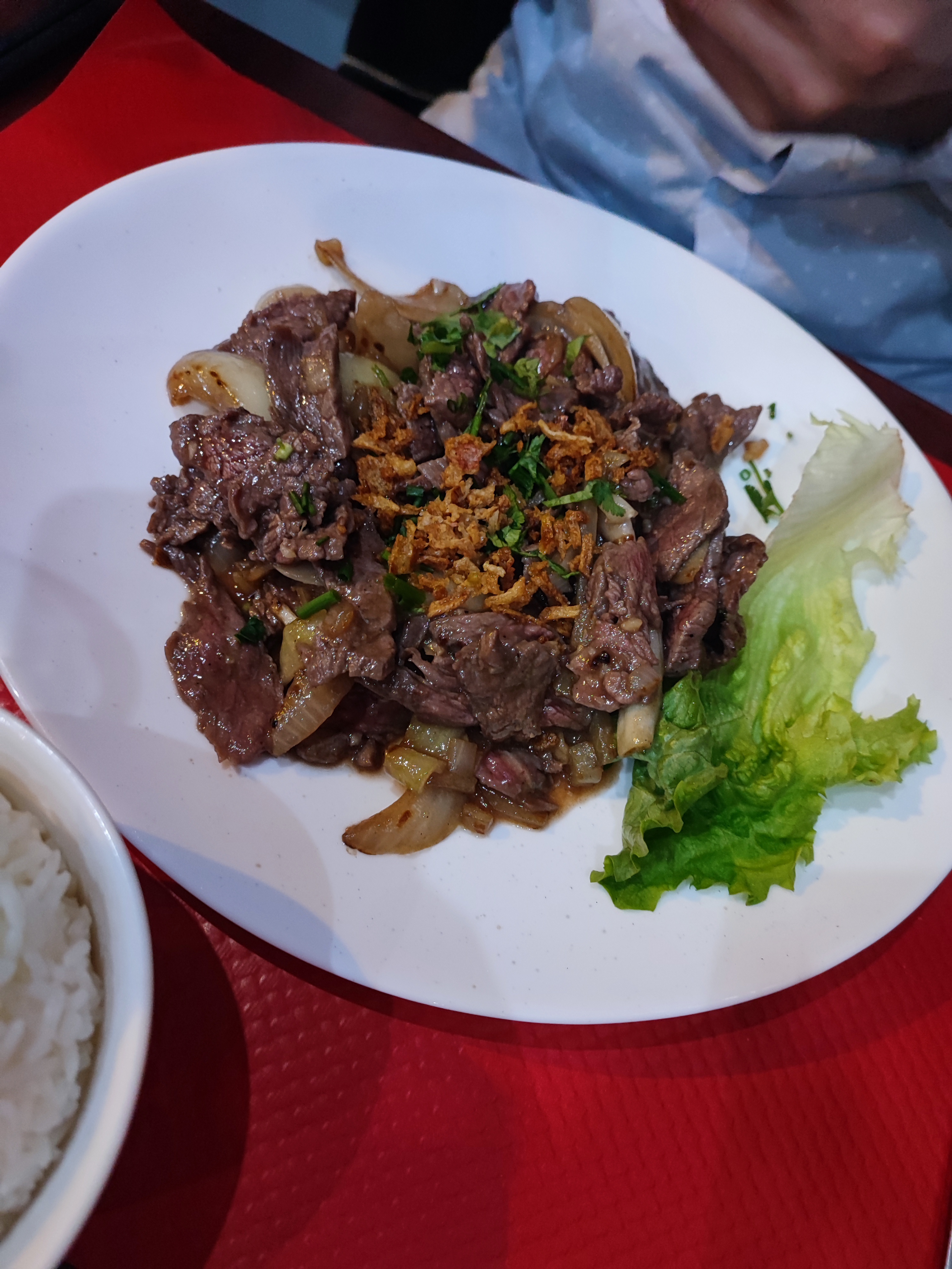 Nous sommes arrivés 1h avant la fermeture à 20h30. Il n'y avait pas de Pho ce qui était dommage car nous sommes venus juste pour l'essayer... Les portions ont mis un certain temps à être servies (35 à 45 minutes). Mon plat, le poulet épicé était bon sauf les morceaux d'ail à l'intérieur (pas un grand fan). Je lui donnerai probablement une note de 4/5. Quant aux nouilles sautées, les nouilles étaient trop fines. Des nouilles plus épaisses seraient meilleures et plus savoureuses. La brochette de bœuf à la citronnelle était ok. Le canard 5 épices était un peu salé et il n'y avait pas grand chose dans l'assiette. Pour ces 2 plats, probablement un 3/5, selon notre goût. A part ça, petit restaurant sympa. Le propriétaire est très sympathique.