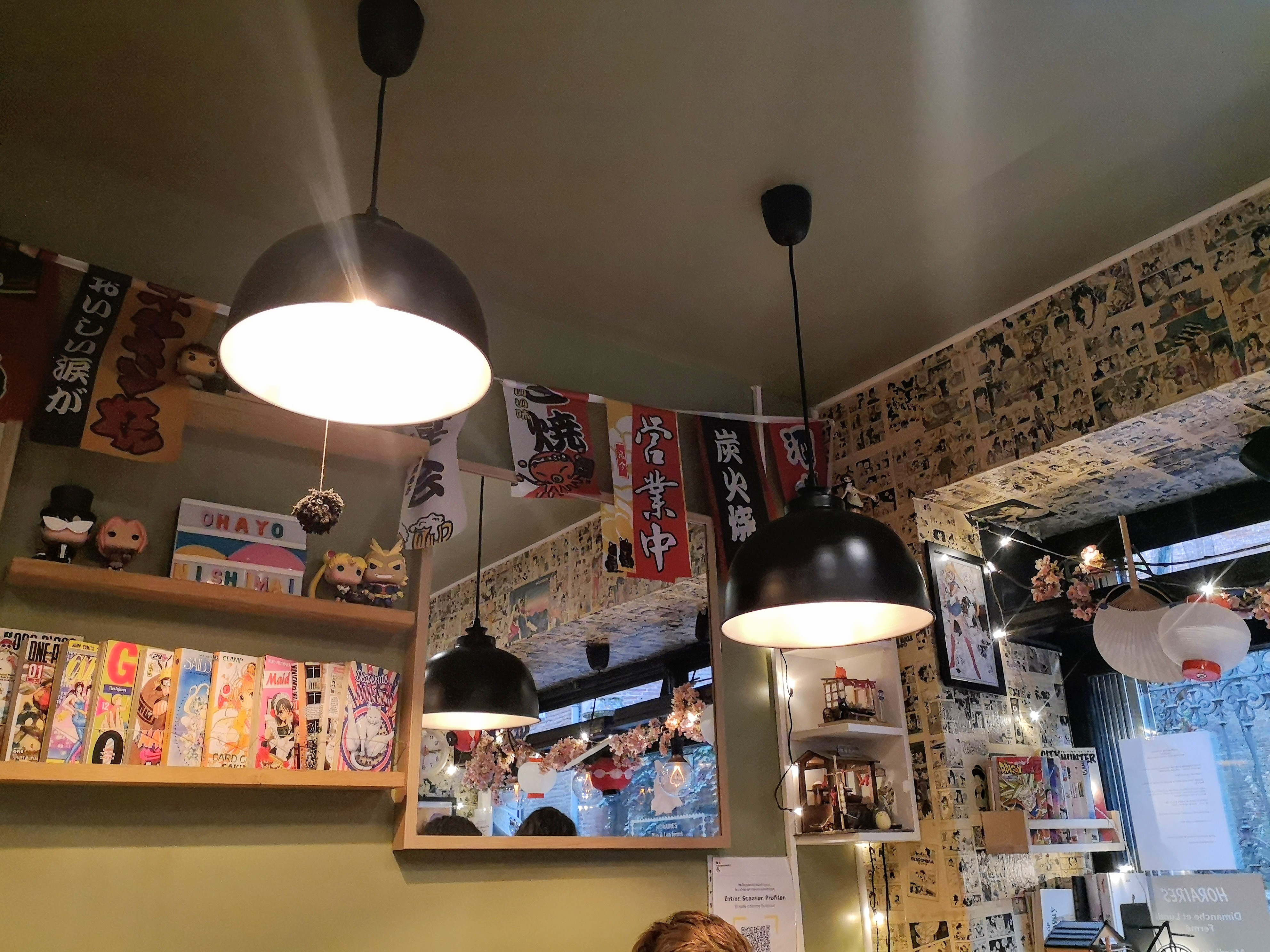 Très bonne cuisine dans un lieu très sympathique et atypique. La décoration aide à se plonger dans l'univers du restaurant, avec ses tapisserie faite de pages de manga. La salle est petite pour respecter l'esprit du fast-food japonais.