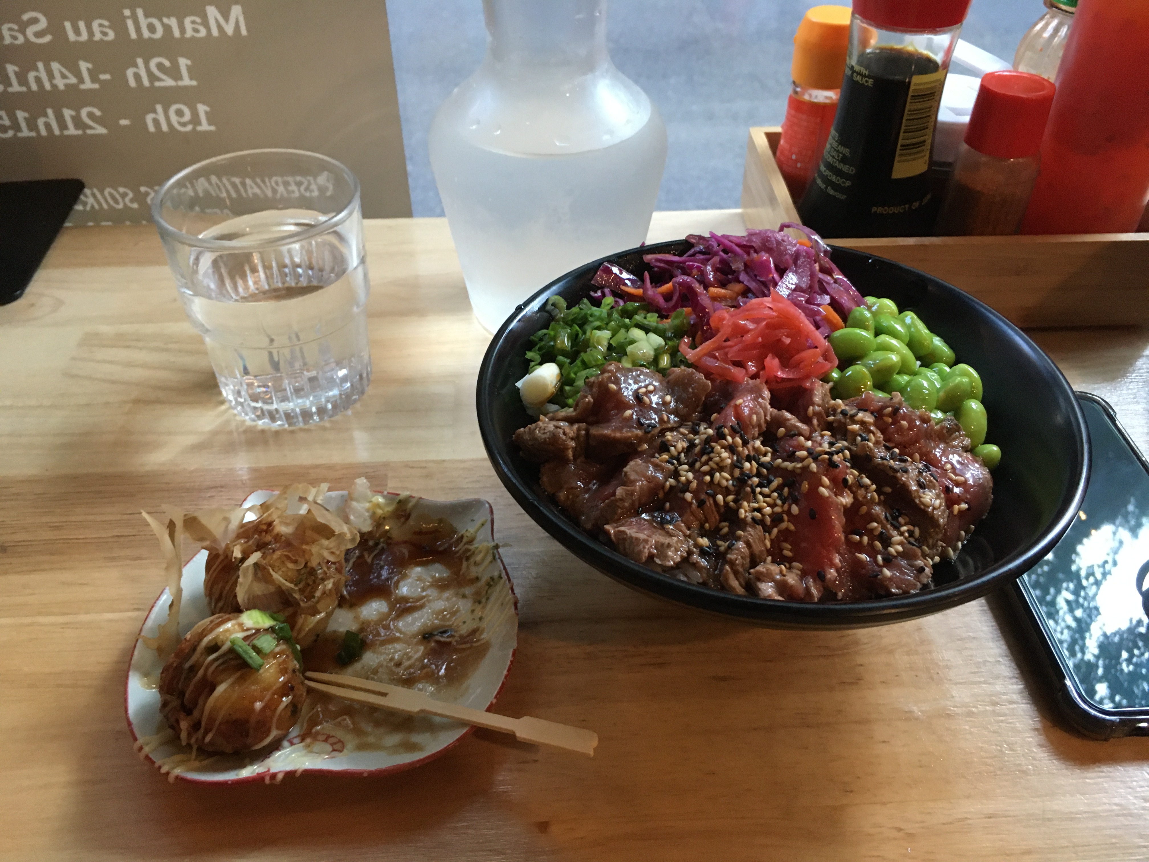 Une adresse devant laquelle je suis passée un nombre incalculable de fois, toujours voulu tester... eh bien c'est fait, et je ne suis pas déçue ! C'est une petite adresse avec une toute petite salle (mais ils font aussi à emporter), très chaleureux, et une serveuse adorable, très accueillante et arrangeante 😊 Et ce n'est pas tout, car les mets y sont tout simplement délicieux ! 😱 - Takoyaki 🐙 ou 🧀 à se damner ; - Donburi au Tataki de Saumon 🐟 ; - Ramen au Tofu... Je n'ai pas testé les mochis car je n'avais tout simplement plus de place !! Options végé disponibles 😊 Franchement, merci pour ce moment de délices !!