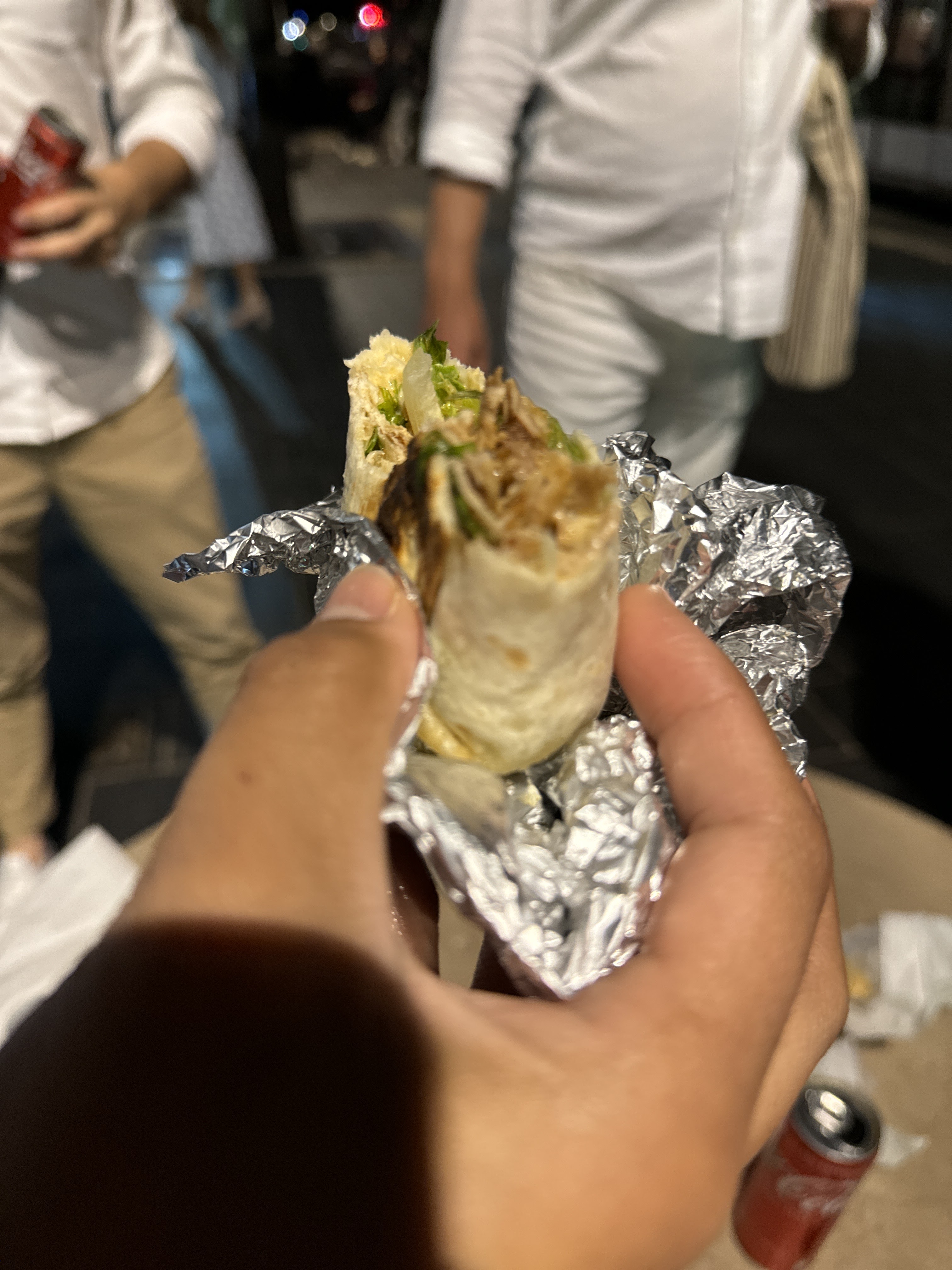 Beaucoup d'attente car vous êtes servi selon votre origine. La viande sur la broche est coupée crue (bonjour salmonelle), le cuisinier la repasse plus ou moins sur la planche. La viande était toujours rosé dans mon tacos. De tout les pires kebab de nice, pas loin d'être le meilleur.