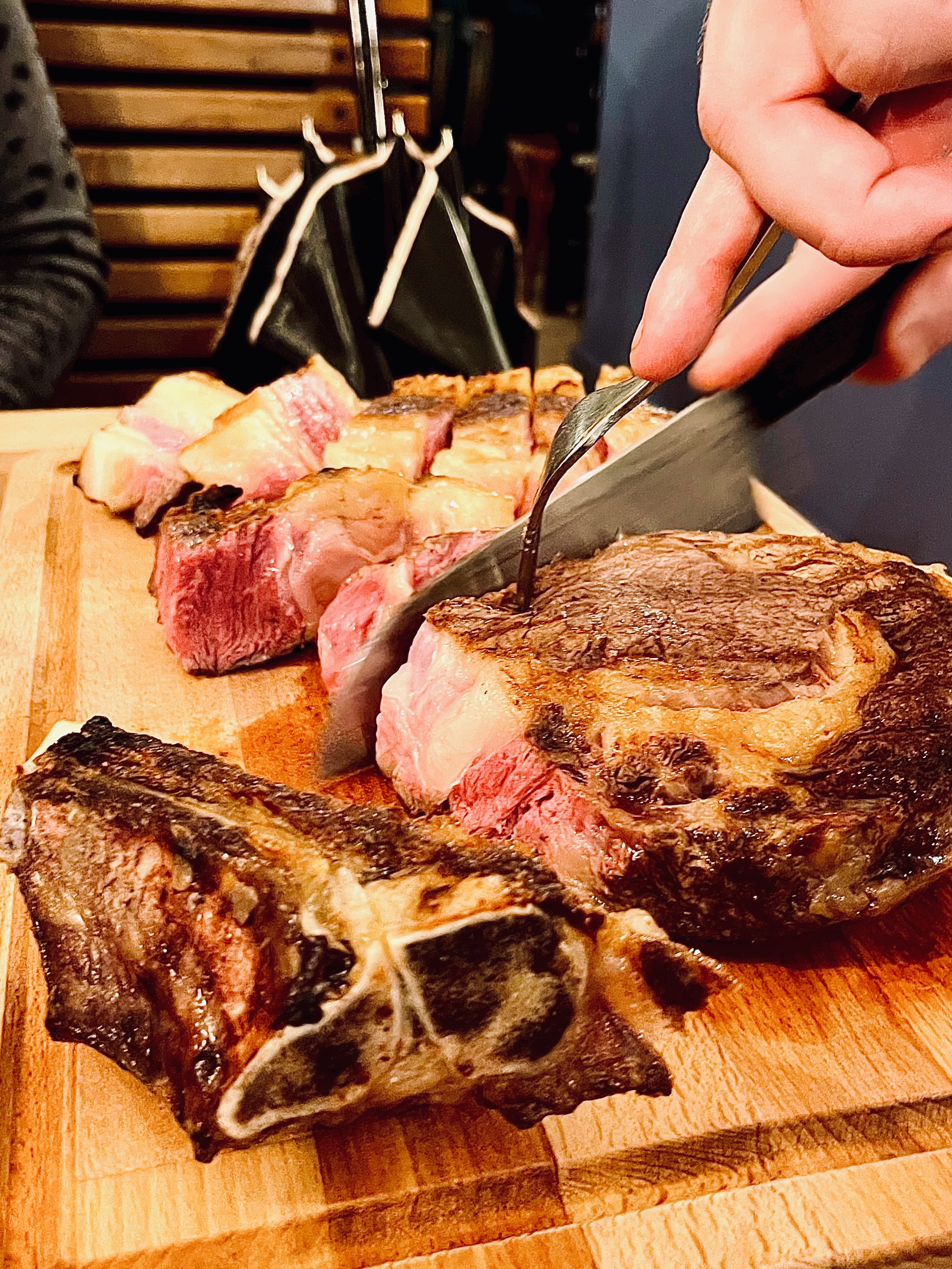 Excellente côte de bœuf maturée ! Le chef vous votre la côte avant de la découper puis vous explique la cuisson. Merci à toute l’équipe pour votre accueil