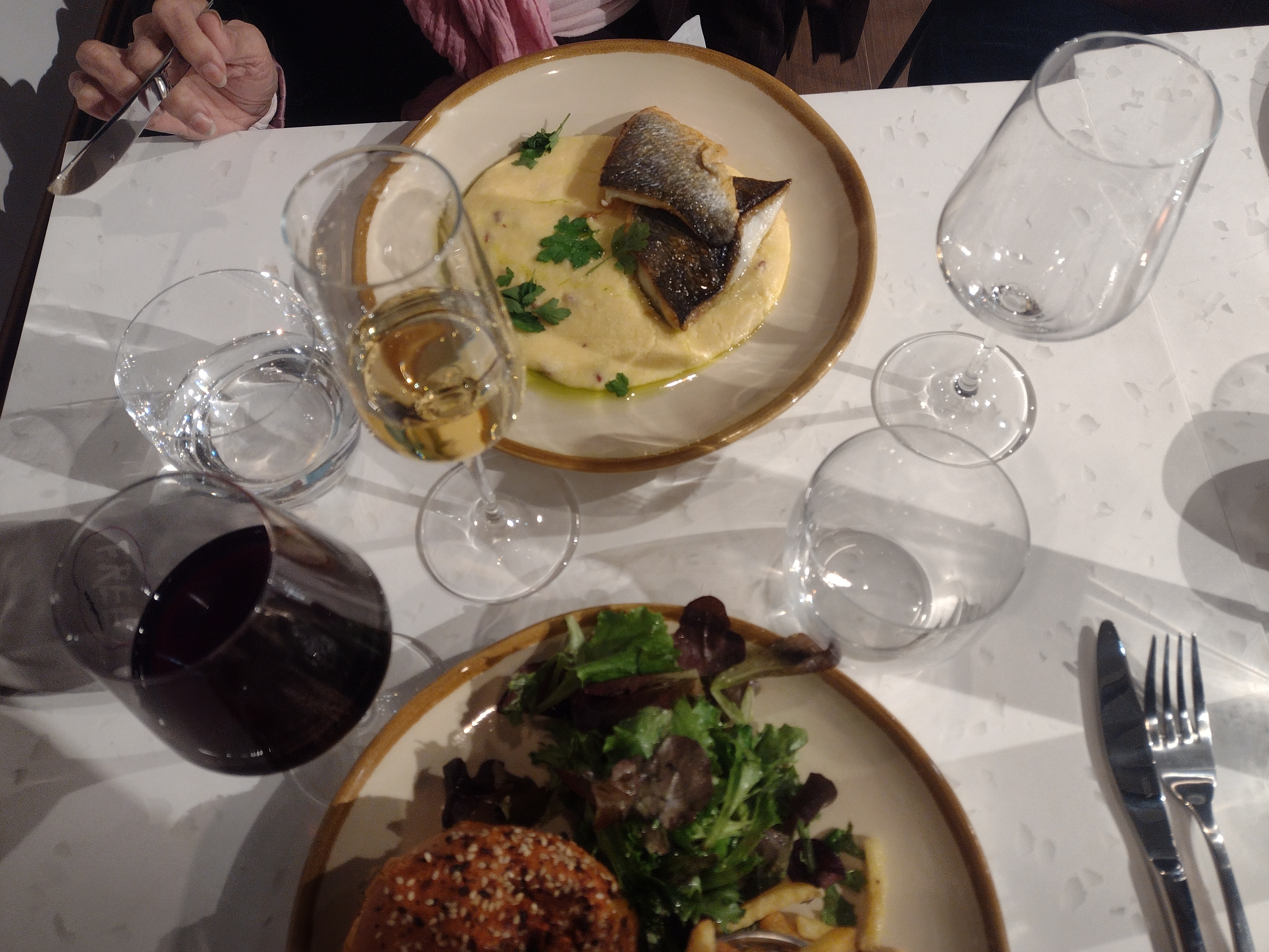 Ambiance assez froide pour ce lieu. Quasi désert à l’heure du déjeuner. Ça sent bon le pain ou la pâte à pizza quand on entre. On nous sert des tranches de pain qui semble industriel. Le sel et poivre sont servis dans des coupelles avec une petite cuillère, ingérable et si tout le monde se sert avec les doigts, pas très hygiénique. Les serveurs débarrassent toutes les tables à côté de vous alors que vous êtes en train de déjeuner… ça donne l’impression que le lieu va fermer alors qu’il est à peine 14h. Pas très agréable… Vin au verre servi au bar, on ne vous montre pas la bouteille, dommage Assiette d’agneau joliment servi, agneau confit à souhait. Burger déconseillé, pain industriel, sauce acide qui gâche le goût du burger, fromage pas fondu à l’intérieur et frites toutes molles froides… Bref assez déçu du lieu