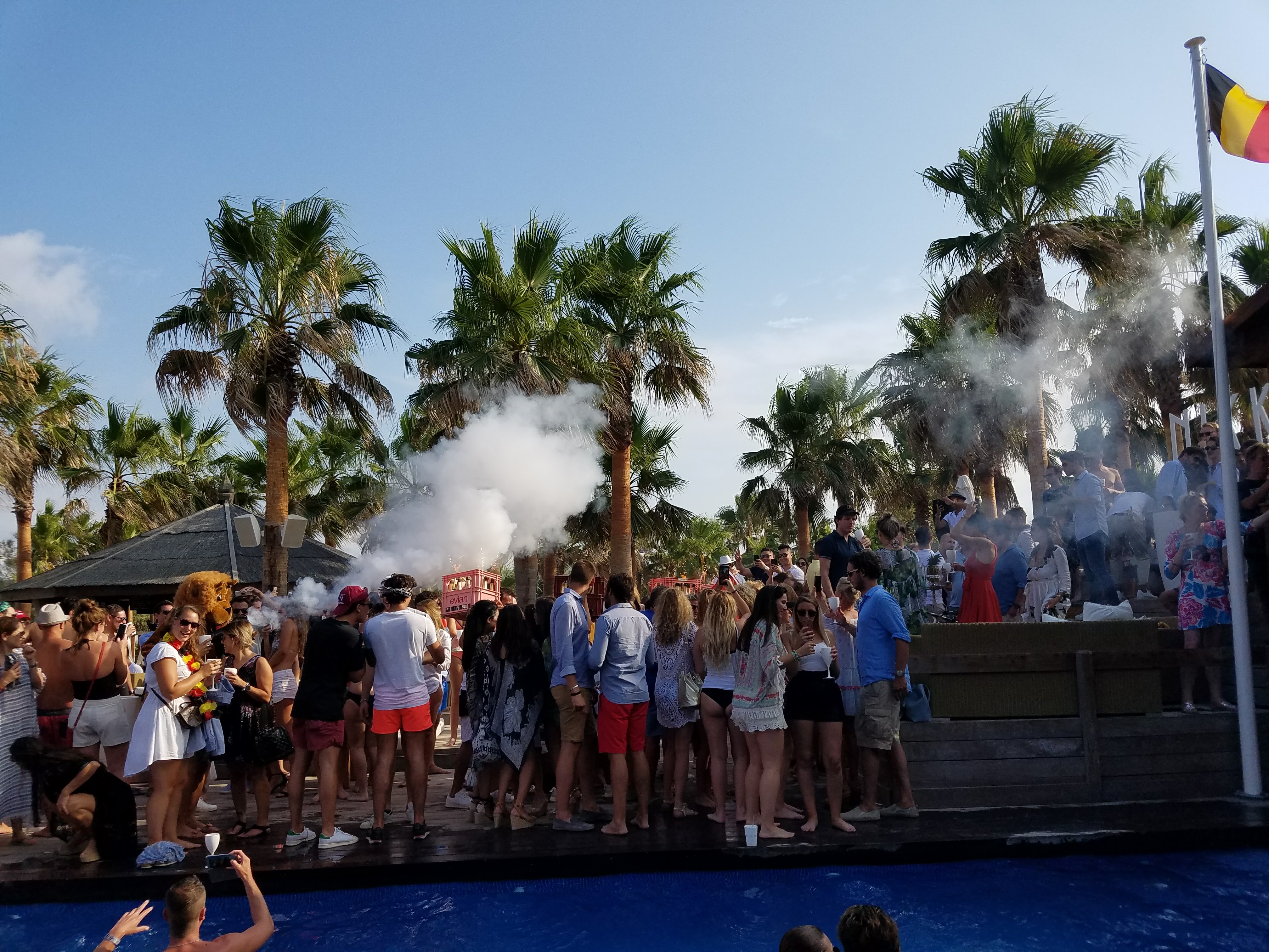 Événement génial. La couverture gratuite pour les fréquences perdues et le fait de s'asseoir/danser autour de la piscine sont gratuits. Les chaises longues commencent à 35E chacune et les lits lounge à 100E