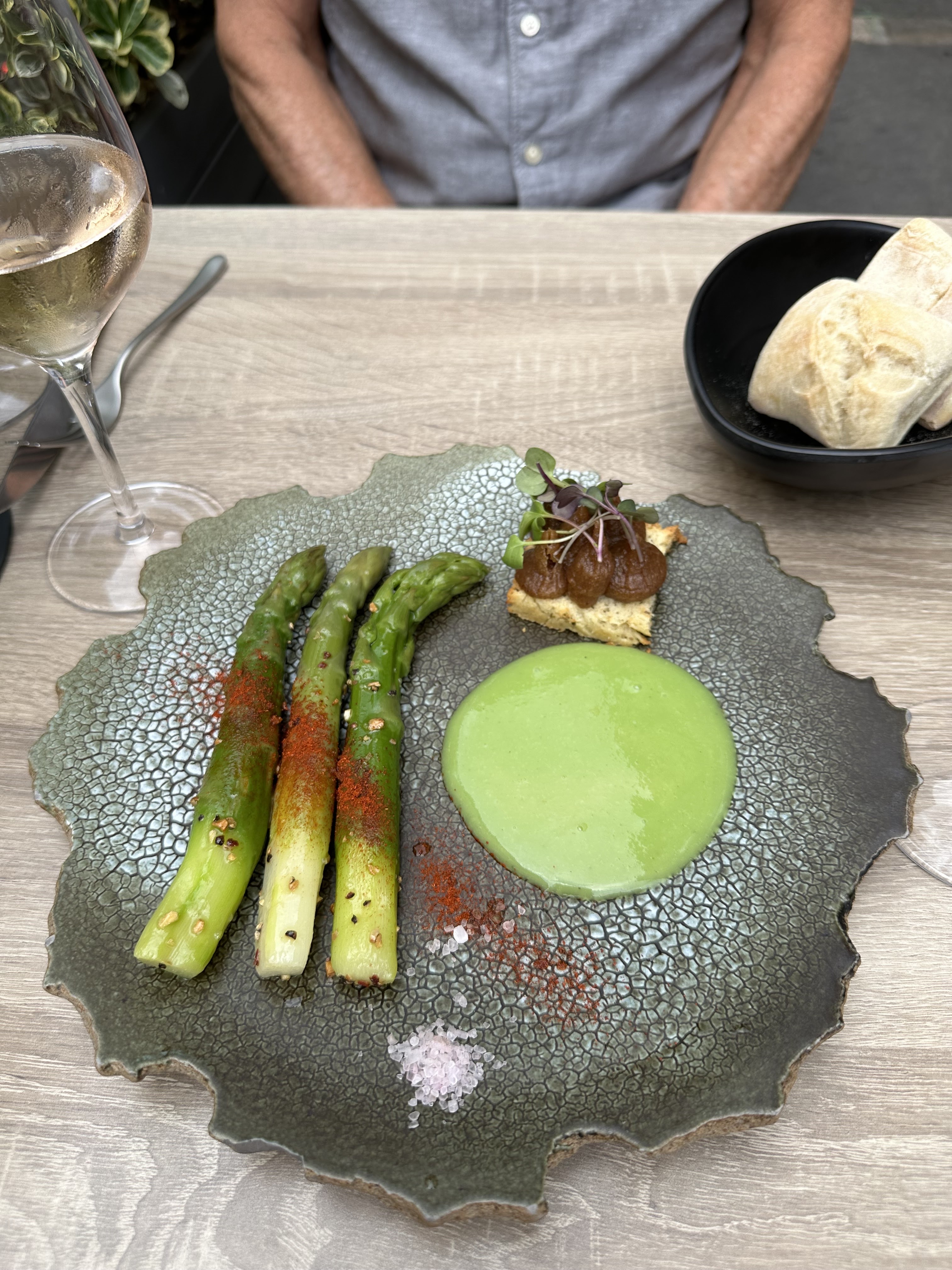 L'entrée (asperges avec sauce au café) était incroyable. Nous avons beaucoup apprécié le restaurant !