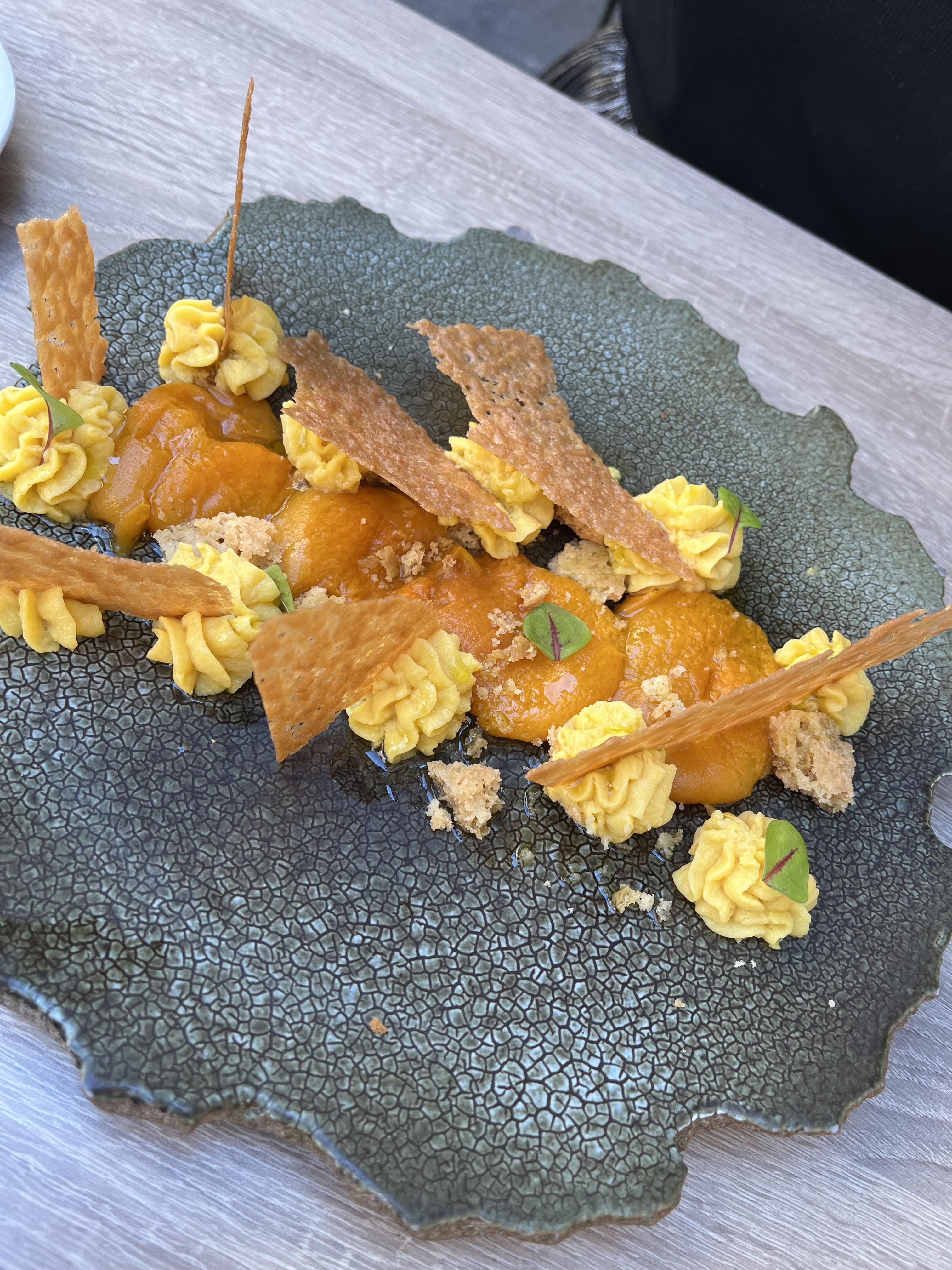 Nous avons eu la chance d'avoir une table ici (à l'extérieur) pour un dîner tardif. L'une de nos invitées a des restrictions alimentaires strictes mais l'équipe de NIRO a pu créer un plat qui s'adapte à son alimentation, sans perdre en saveur ! Nous avons eu le foie gras et le canard qui étaient incroyables, le canard était peut-être l'un de mes plats préférés que j'ai jamais mangé. Les combinaisons de saveurs sont si uniques, comme je n’en ai jamais essayé auparavant. Il faut aussi rester pour le dessert et essayer le plat aux abricots. Encore une fois, des combinaisons de saveurs étonnantes - l'abricot pétille dans la bouche. 10/10 !!!