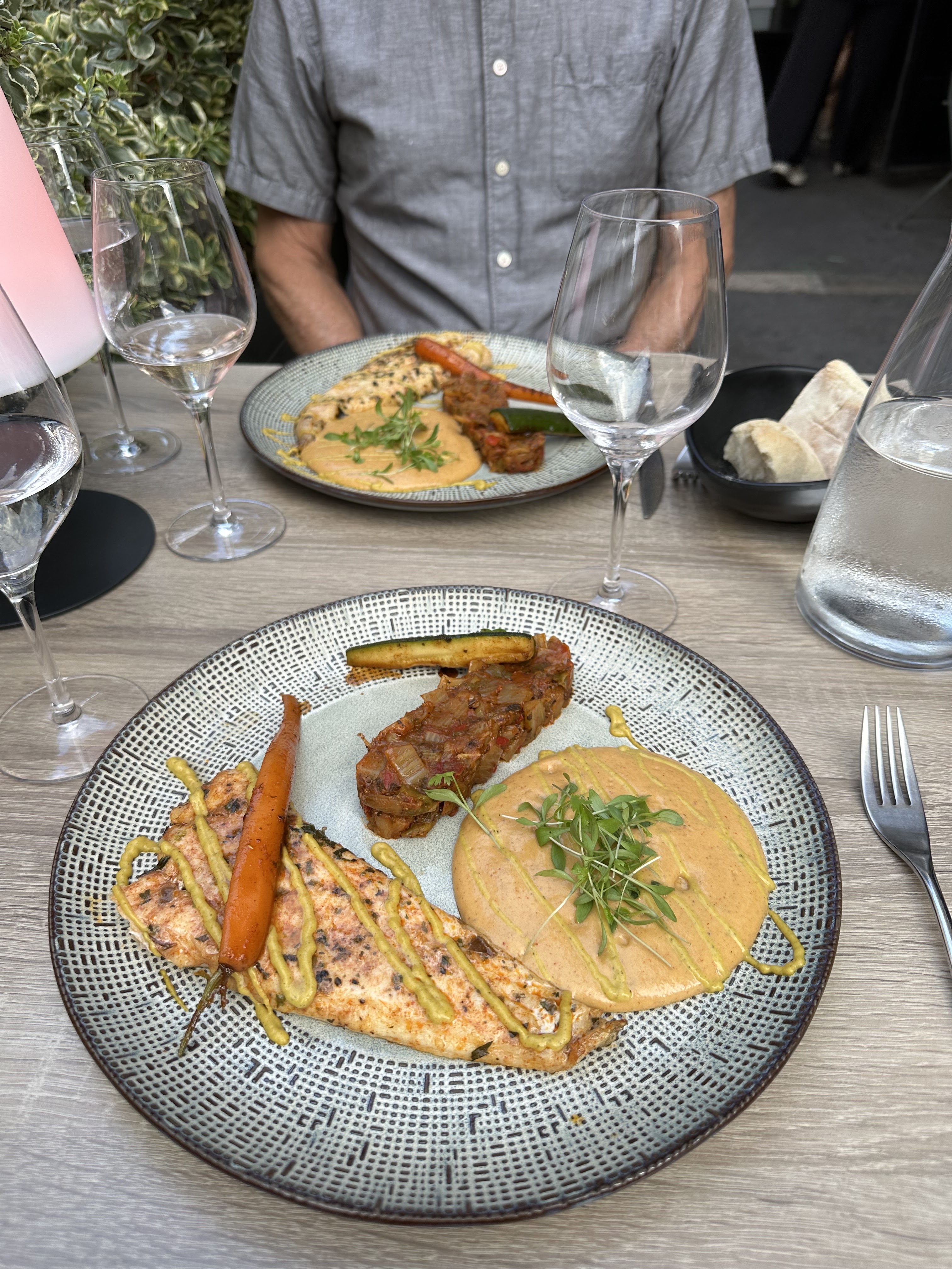 Restaurant bien placé, un peu à l'écart des terrasses collées serrées. Les plats végétariens sont délicieux, recherchés et bien travaillés. Plutôt rare en France...Un vrai plaisir.