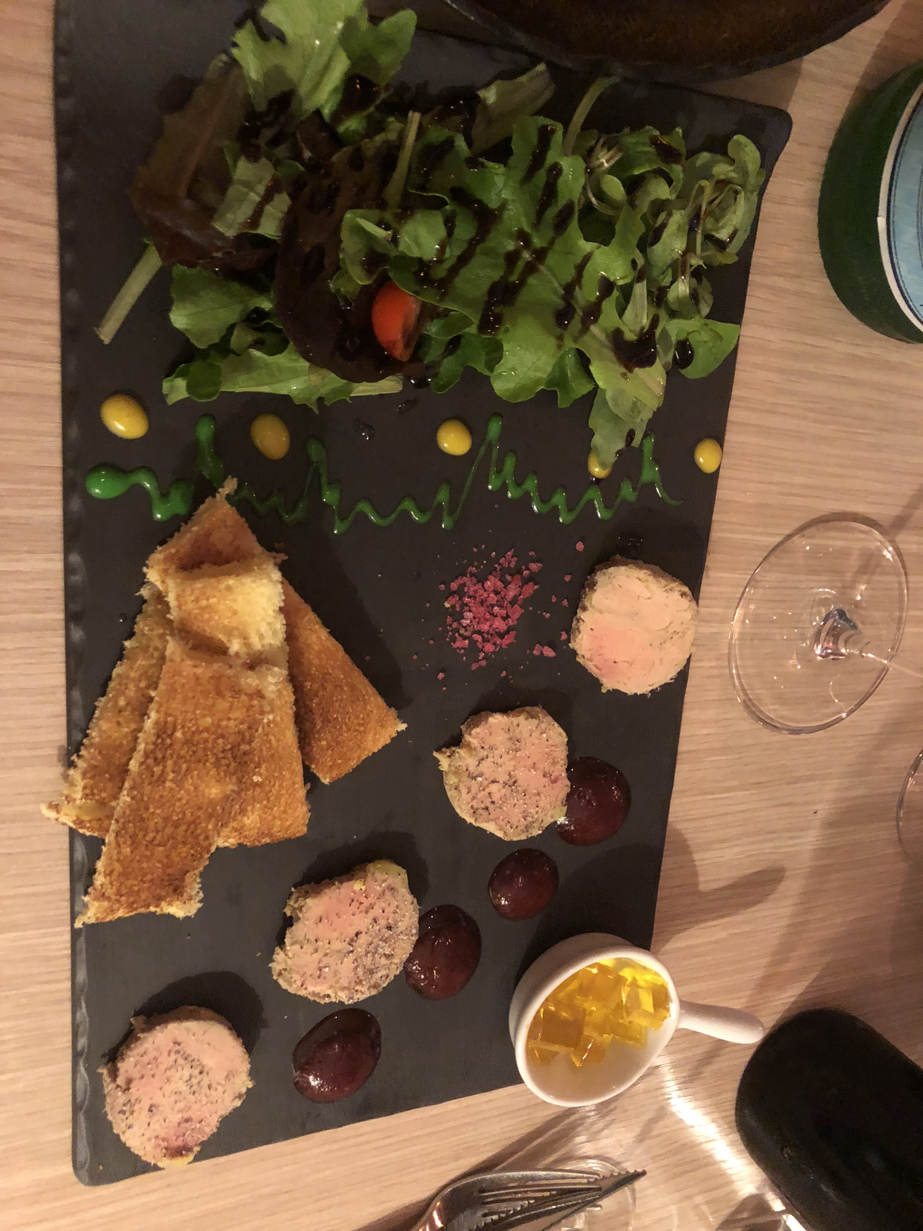 Je suis tombé là-dedans après avoir mal réservé un autre endroit la mauvaise nuit. Le foie gras était potentiellement le meilleur que nous ayons jamais mangé. Je ne le commande généralement pas, mais il a été recommandé et à juste titre. Les plats de poisson et de porc étaient également excellents. Le service était sympathique, compétent et gentil. Hautement recommandé.