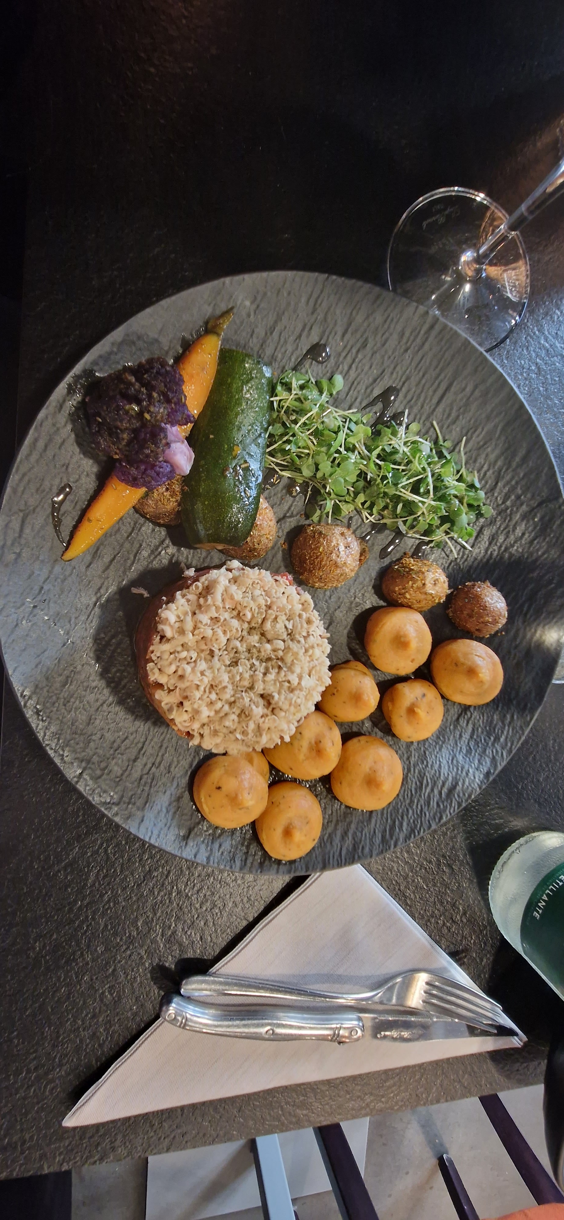 Très bonne expérience, des plats travaillés, vraiment bons avec plein de saveurs, je suis végétarienne et j'ai adoré ce restaurant ! Le Gaspacho de tomates au tomates zébra et le gâteau de racine à la truffes c'était délicieux un vrai restaurant gastro !!