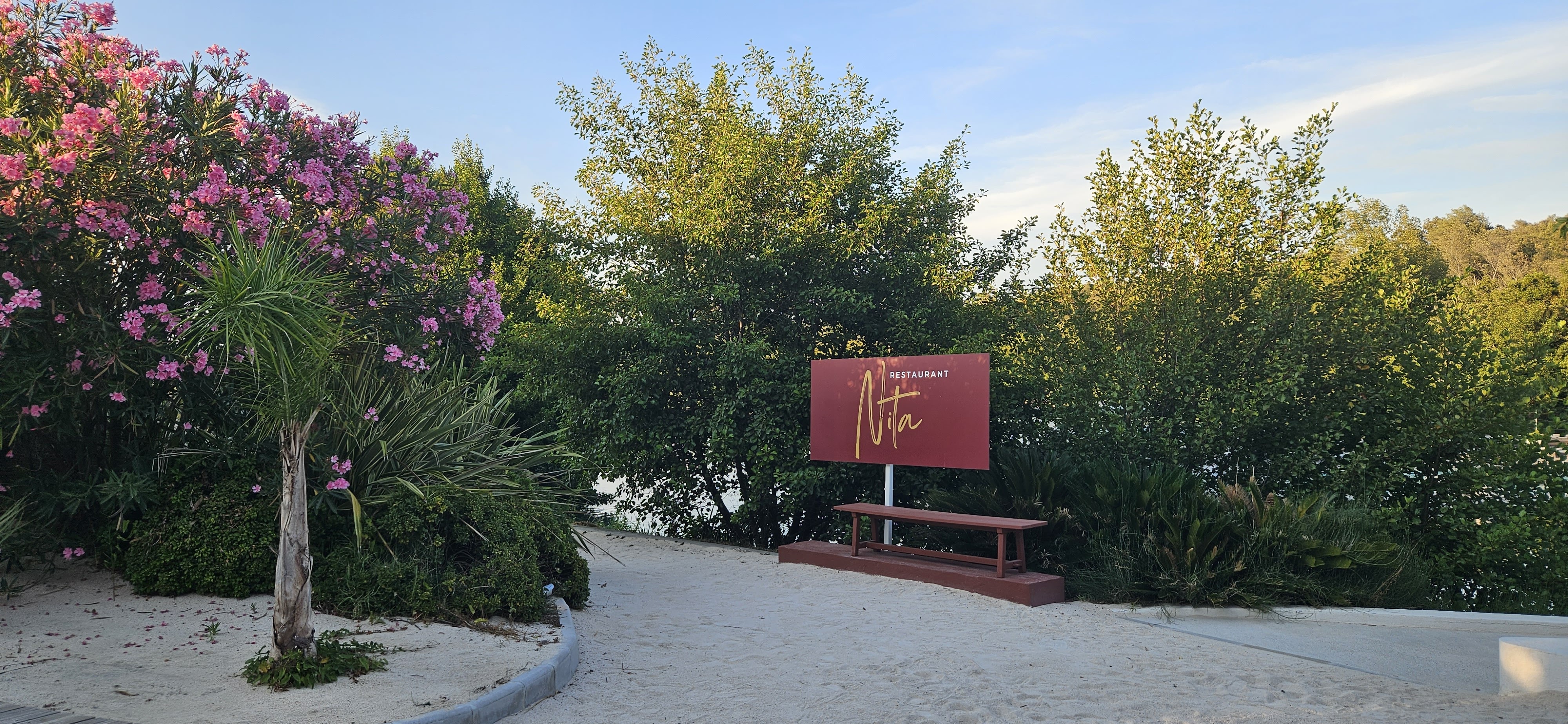Très joli endroit, déco moderne, élégante. Beaucoup de charme, plage dd sable sous les tables. Piscine dans le petit lac. Prix plutôt élevés, qualité des produits correct ...frites congelés par exemple :(