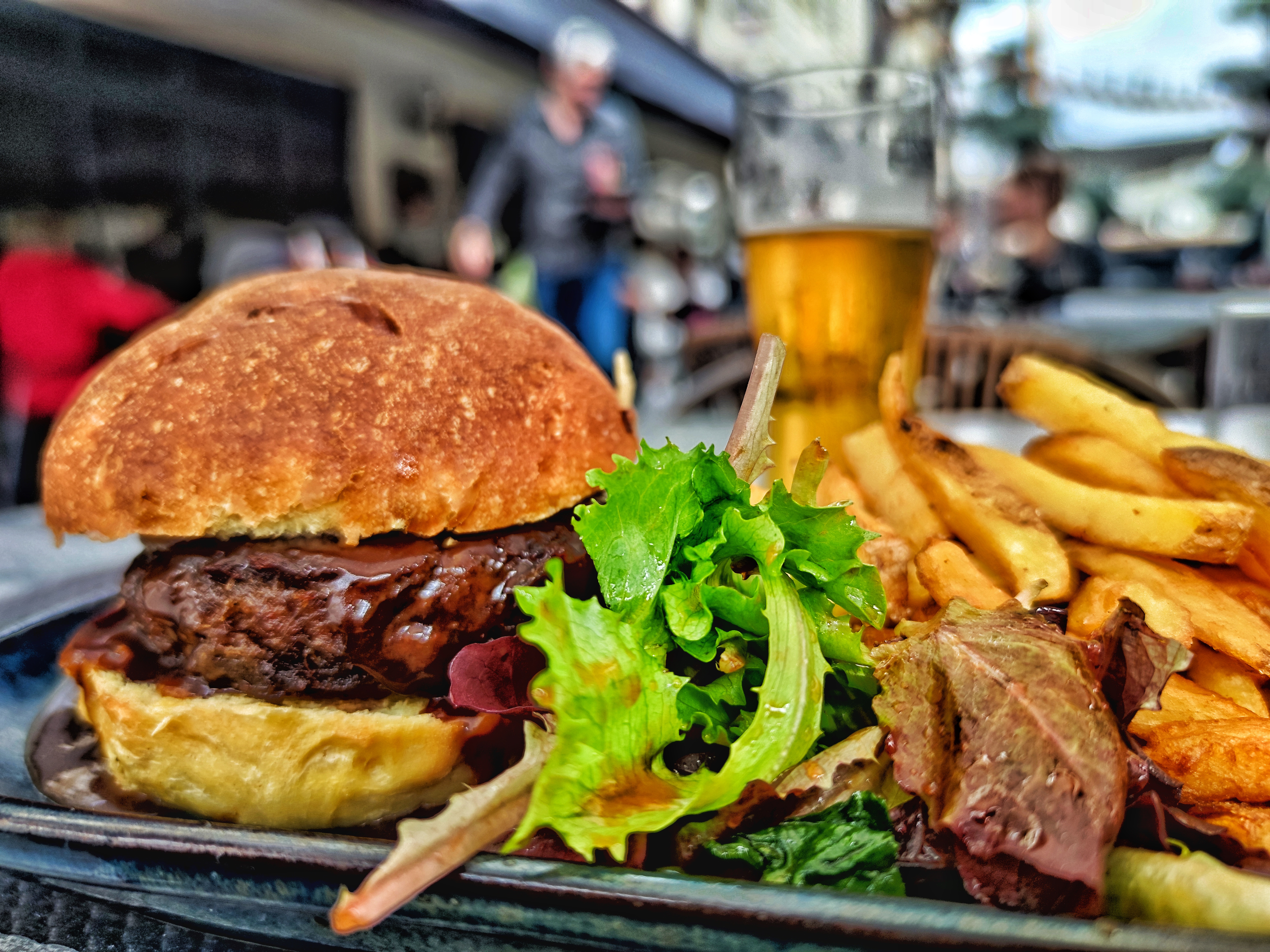 Lieu bien situé et très convivial. Burger au canard et leur sauce délicieuse. Frites excellentes. Dessert également très bon. A la fin repue. Mais agréable moment.