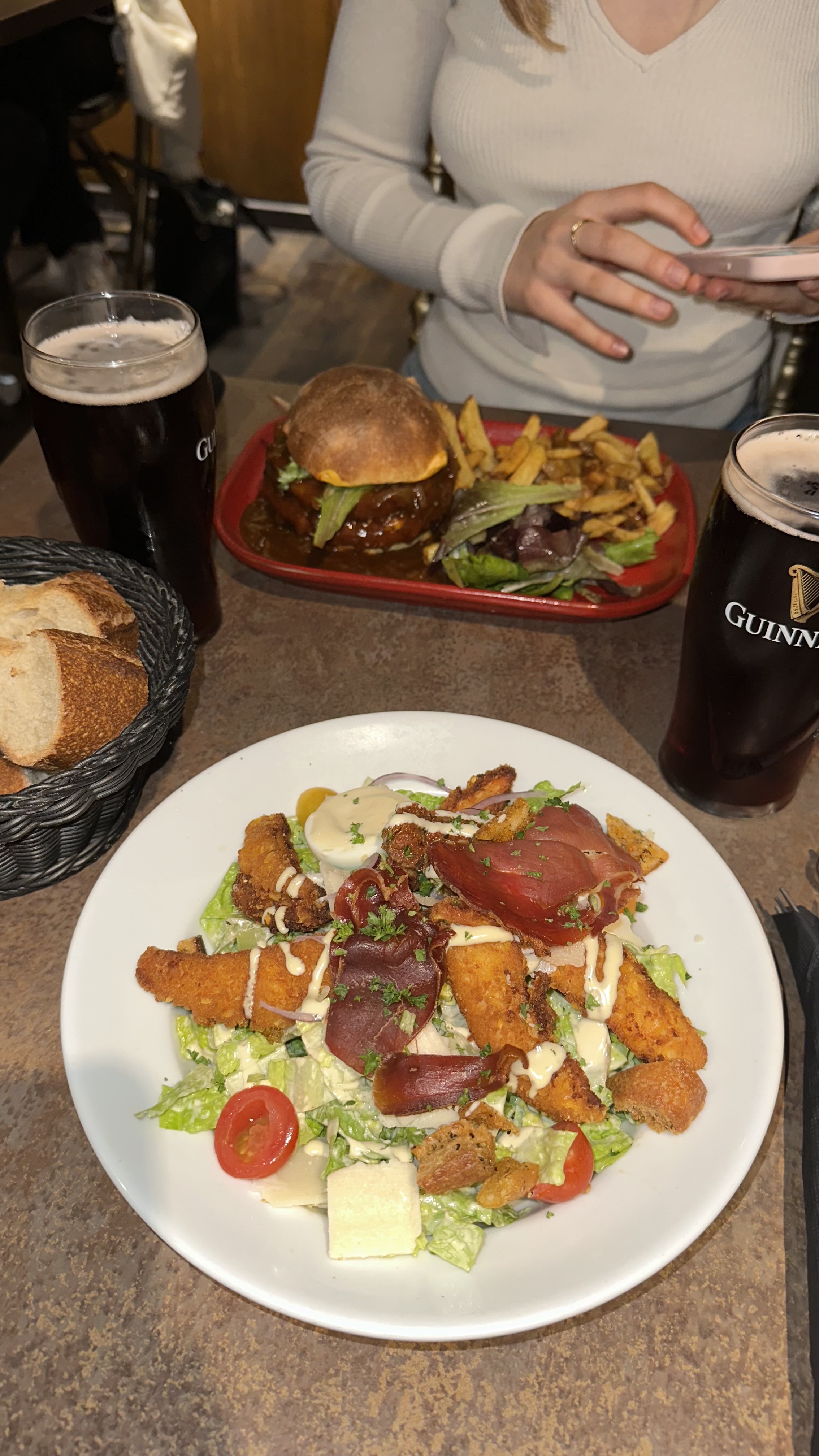 L'ambiance est bonne, musique agréable, cadre sympathique. La nourriture est très bonne, les portions généreuses comme on les aime. Je recommande le burger bœuf qui est très généreux pour le prix et délicieux. Très sympa pour boire un verre même si on a attendu 10min avant d'avoir une serveuse qui viens nous voir, sachant qu'il n' y avait pas grand monde.