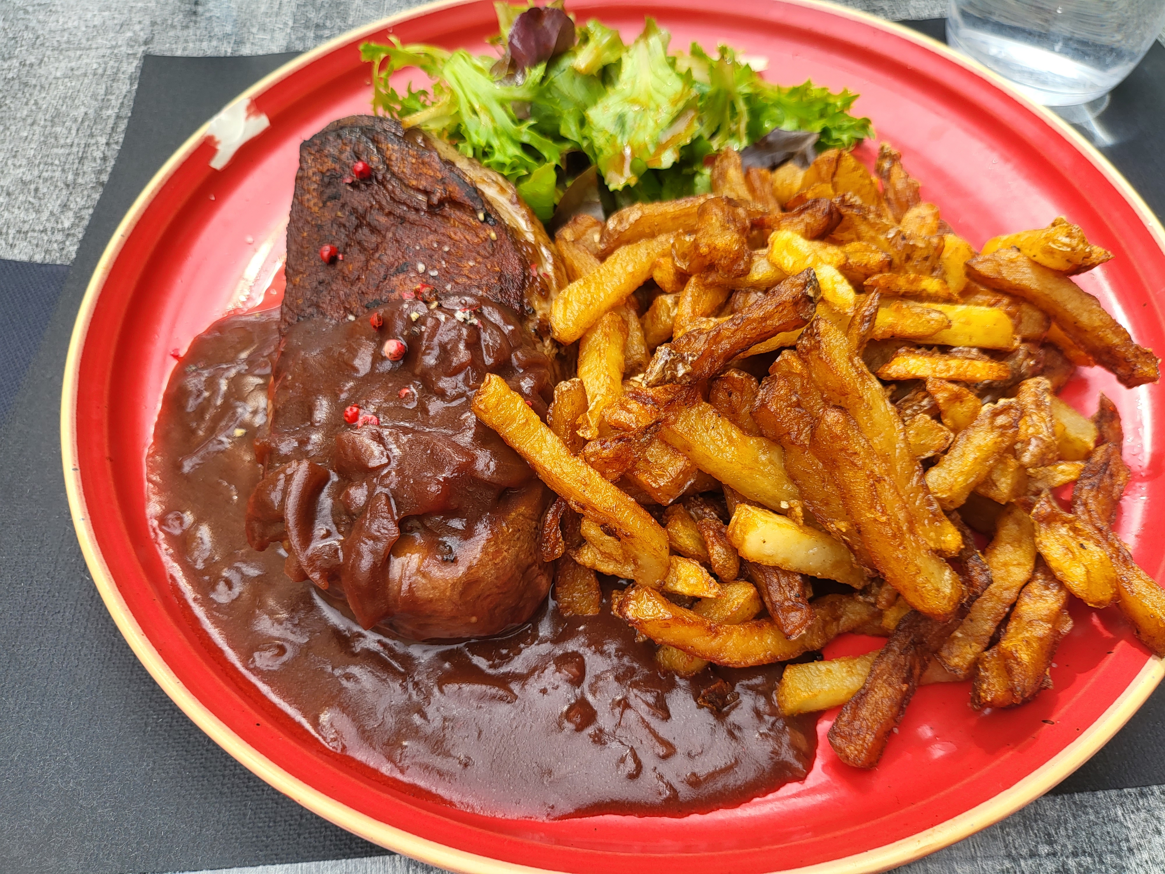 Le 5 juin jour du carnaval 2022 reporté à cette date j'ai déjeuné avec mon épouse dans cette brasserie. La pièce de viande servie était très correcte, bonne et tendre, accompagnée d'un bon gratin dauphinois et d'une sauce aux cèpes et Jurançon. Le tout pour 23€ donc plus que raisonnable pour un plat copieux et bon. Je suis de Lyon et quand je reviendrai à Pau j'y retournerai !