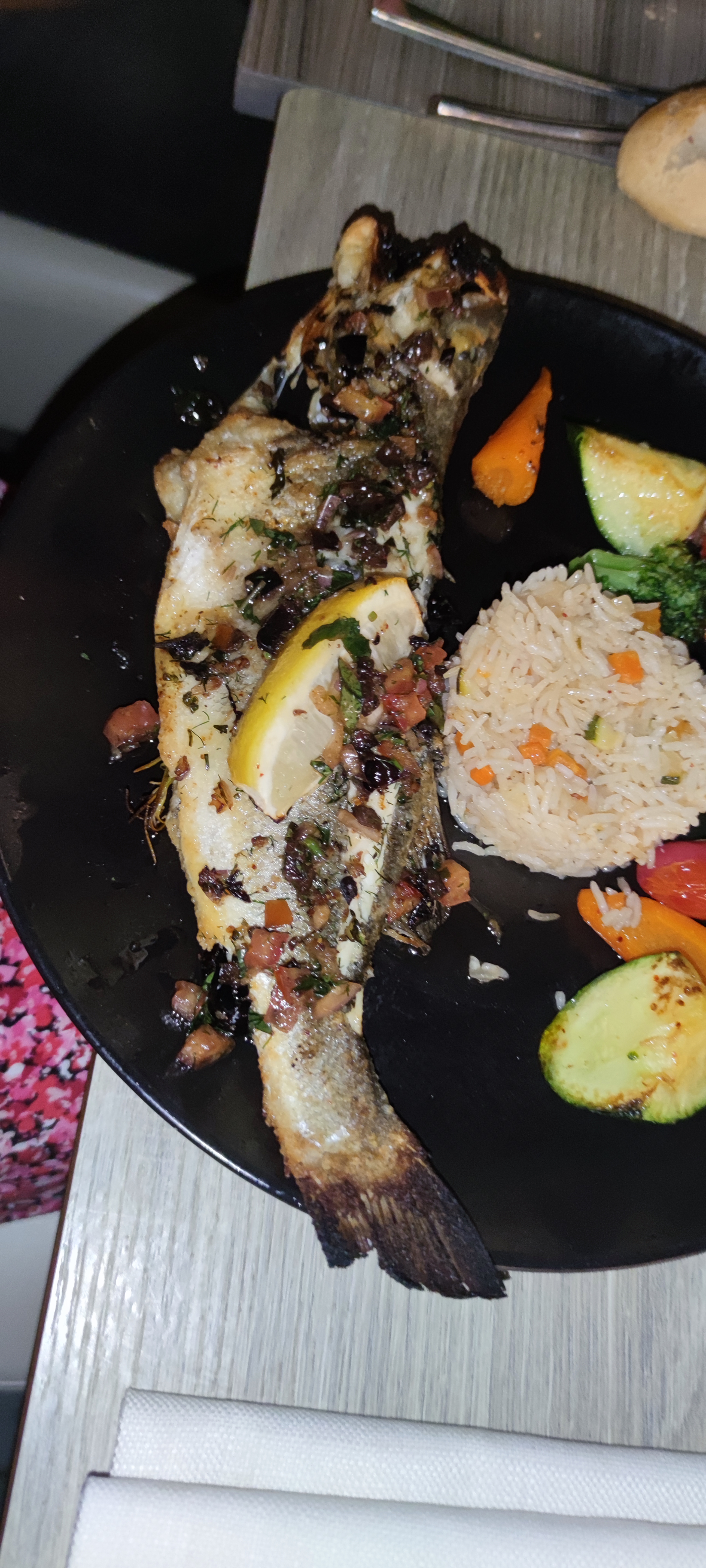 Pas réussi à réserver a terra cotta et on s est rabattu sur ce restaurant. Prix élevé (on est en Corse). Assiettes pas énormes sauf les salades. Sinon service rapide. Mais 21€ pour un petit morceau de cabillaud sur un lit de purée avec des carottes et de l aïoli ça fait chère pour ce que c est. Mais bon a Propriano c est pas étonnant que ce soit chère. Sinon les assiettes sont jolies.