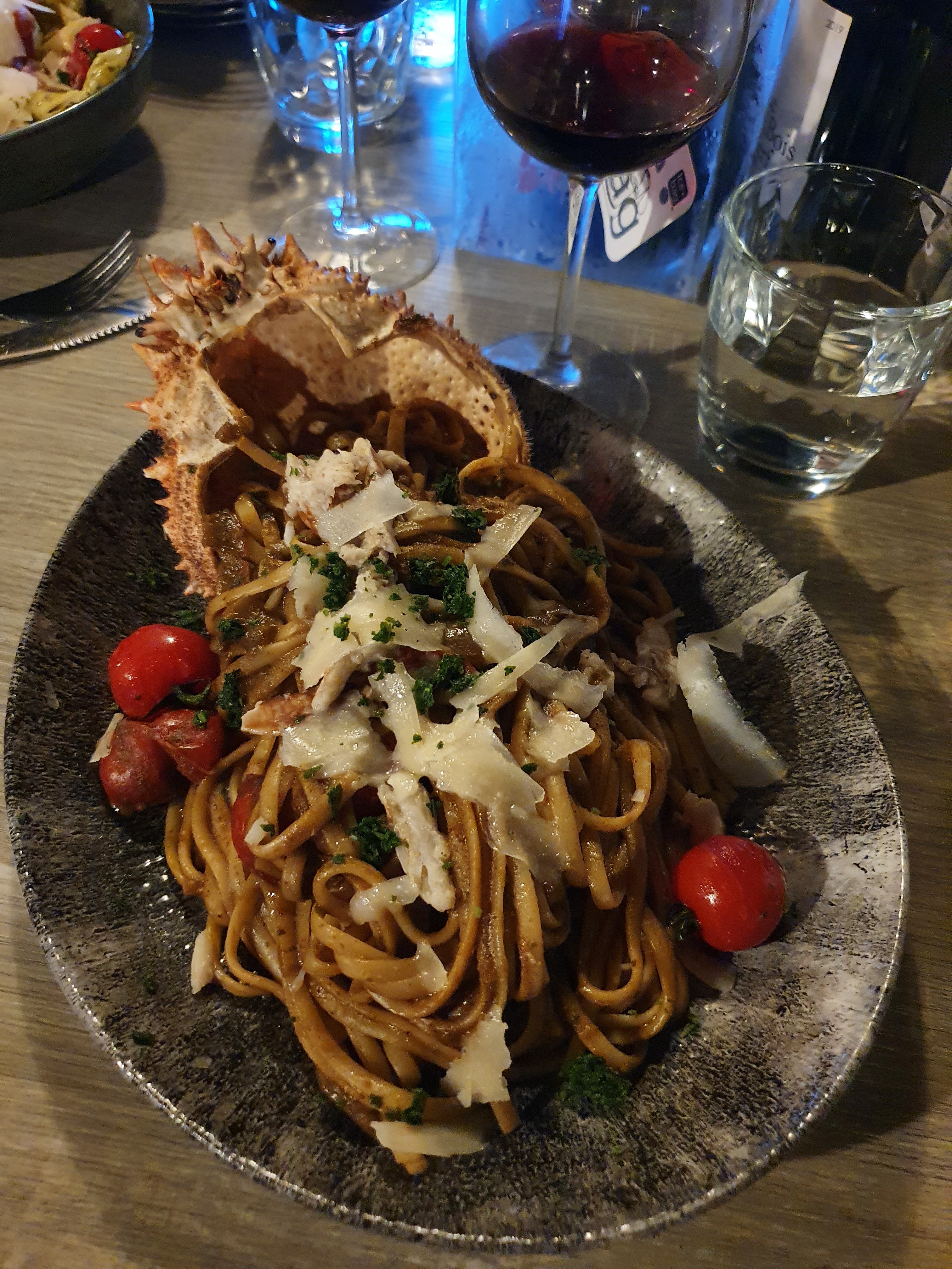 Mojito, vin et linguine vongole très bons. Rien à redire sur la cuisine. Par contre, il y a une serveuse extrêmement antipathique, à croire qu’on la dérange, je crois que je n’ai jamais vu quelqu’un d’aussi peu aimable dans le monde de la restauration alors qu’on ne lui avait strictement rien fait (aucun sourire, oppressante, regards sombres insistants, vraiment pas cool). Nous avons reçu les plats en même temps que les verres apéritifs... Heureusement, une autre serveuse très professionnelle a pris le relais de notre table et a été hyper compréhensive et arrangeante, nous avons pu boire l’apéro tranquillement et recevoir nos plats plus tard lors du vin. De ce fait 3 étoiles mais difficile d’en mettre plus car l’ambiance était malgré tout spéciale. À retester pour confirmer!