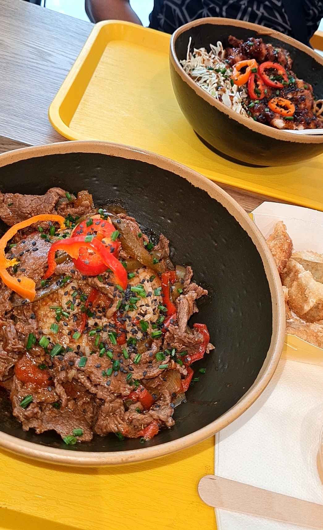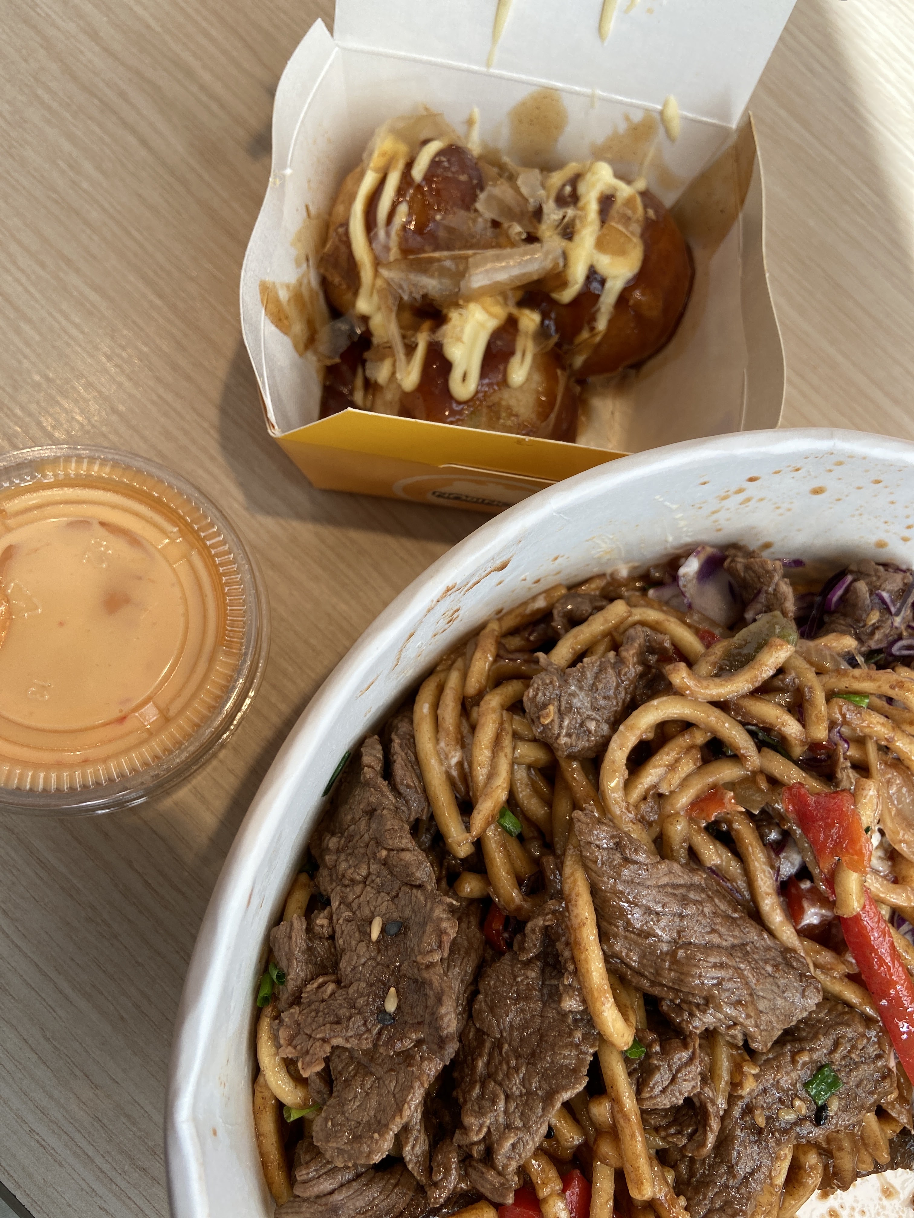 La quantité est là. Par contre le reste c'est vraiment pas fou.. la base yakisoba aux poivrons est infâme : pate trop cuite, sauce très moyenne... Où est le chou rouge 😭 ? Le boeuf ? Trop sec. La base riz est neutre et sans intérêt. Le curry c'est de l'industriel mal dosé avec de l'amertume en arrière goût... Le dango ? Plus jamais. Le burger, très bon, l'unique satisfaction pour moi. Les gyoza je ne sais toujours pas si j'ai pris végétarien ou a la viande au niveau du goût.. dans le doute on va dire végétarien pour satisfaire ma bonne conscience. En comparaison avec le goût de l'équivalent au Japon on est à des années lumières. 1 étoile pour le personnel et le burger.