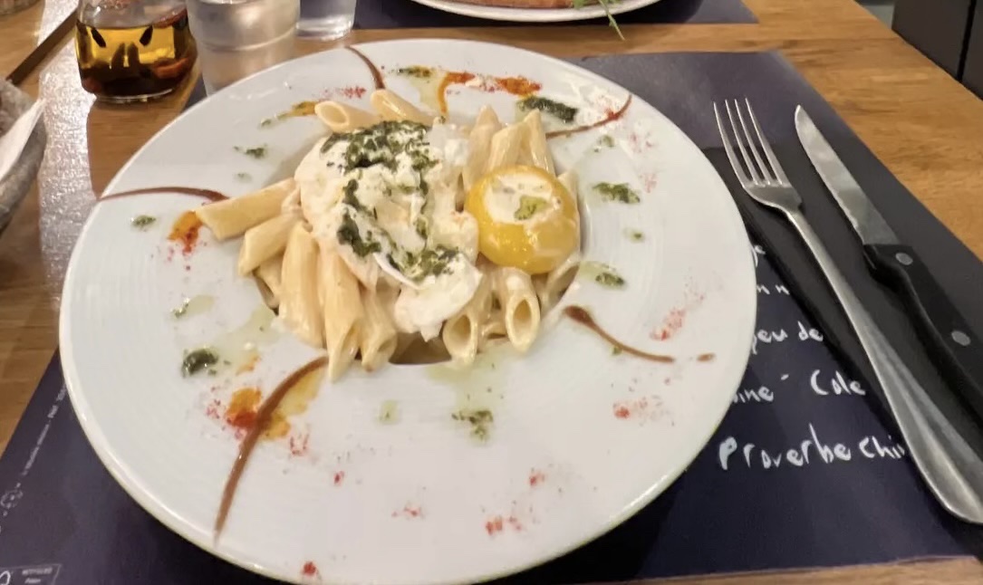 Penne aux légumes sans aucune saveur, mes pauvre penne nageaient dans une sauce tomate complètement aqueuse et sans goût. Ce n'est pourtant pas bien difficile de faire une sauce tomate goûteuse! Peut-être un pb de matière première? Les penne étaient correctement cuite, al dente, donc je mets deux étoiles pour ça. Je n'ai pas goûté la pizza donc pas d'avis là-dessus.