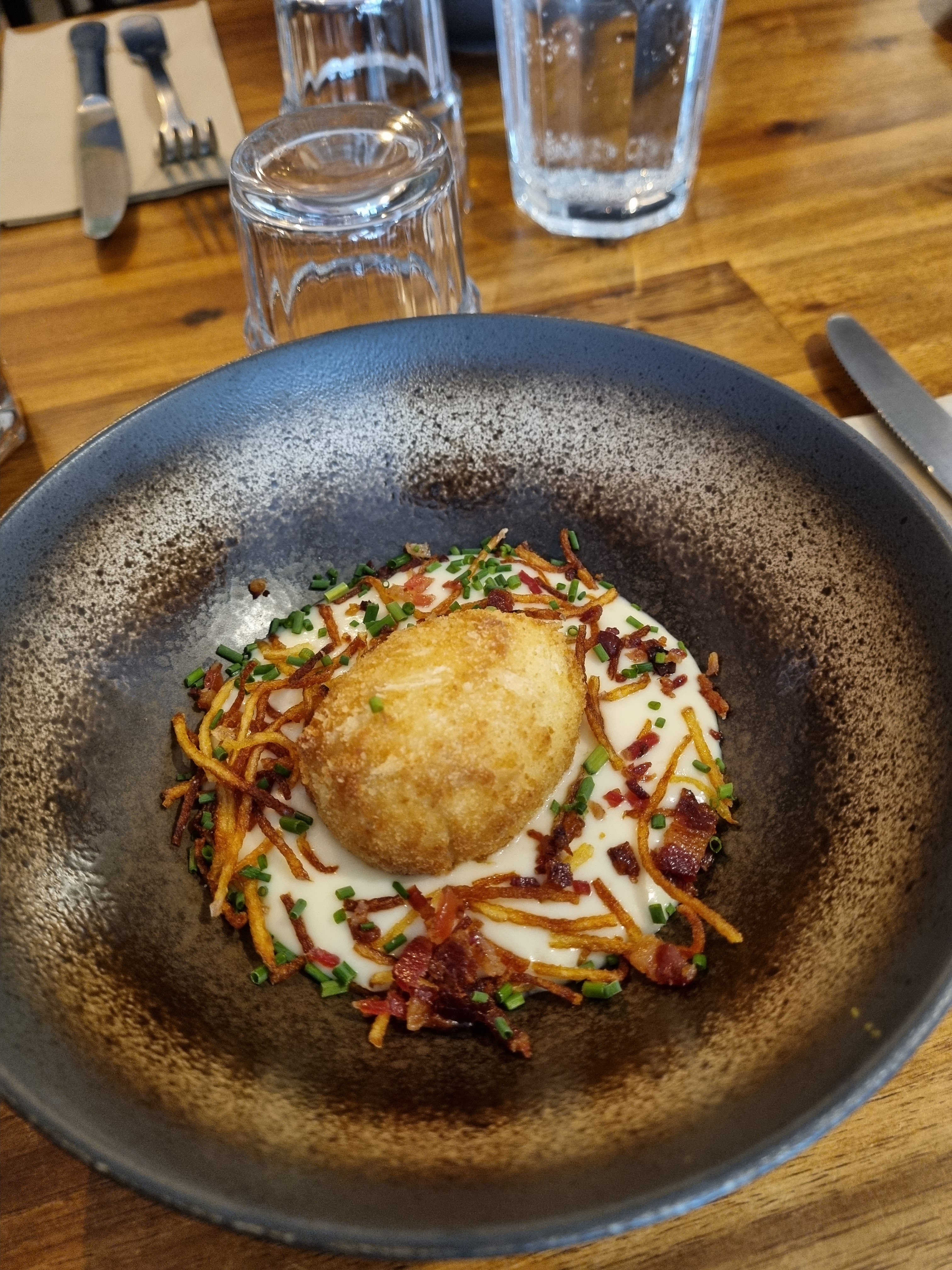 Je recommande ce restaurant. Nous y avons très bien mangé. L’œuf mollet pané était excellent, de même pour le burger. Service très agréable ! Belle découverte !