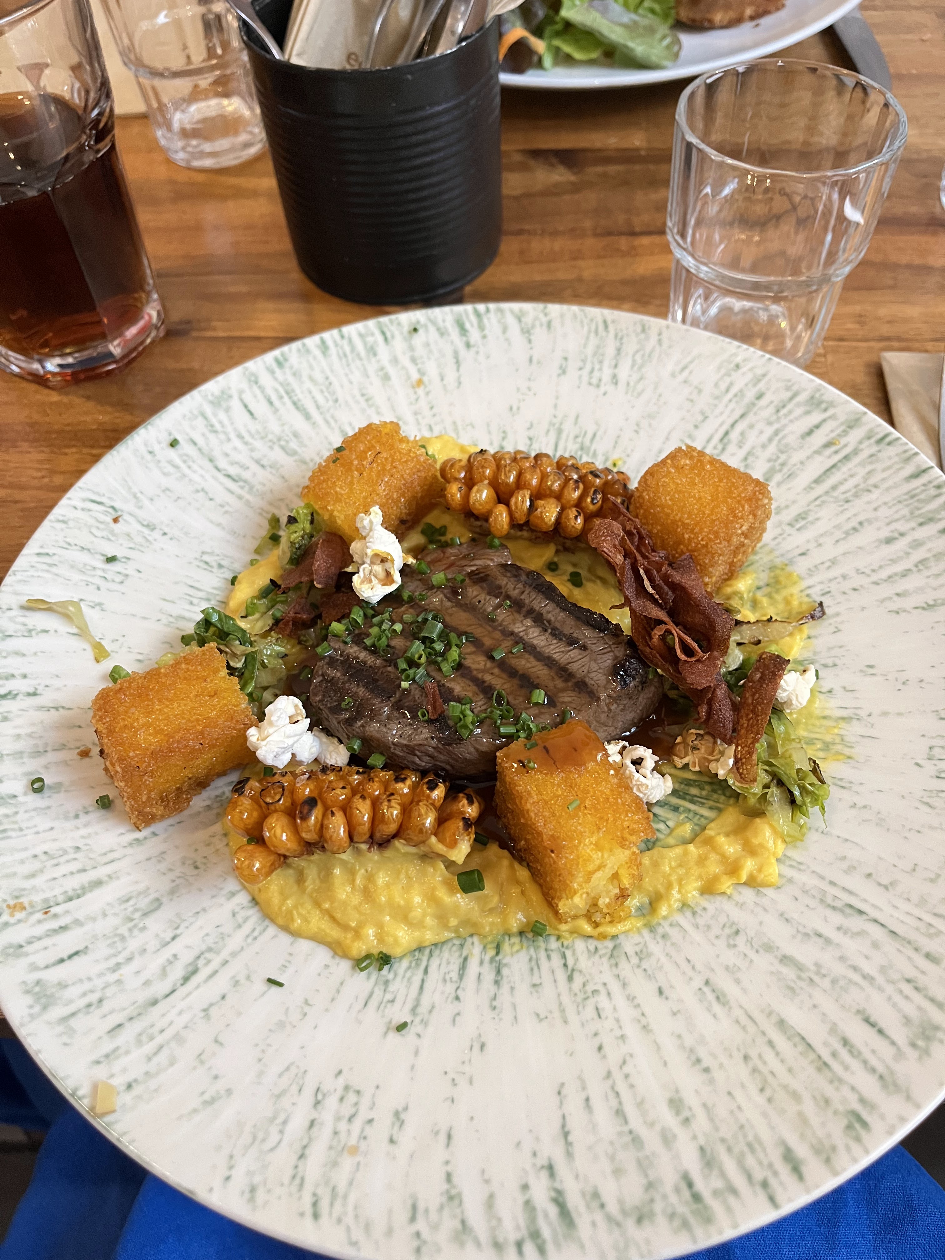Nous avons bien mangé mais un peu déçus par rapport à la cuisson des produits. Oeuf mollet en surcuisson, croustillant d agneau et burger (pain trop doré). Privilégiez l exterieur si vous etes sensible à la chaleur car nous avons eu chaud.
