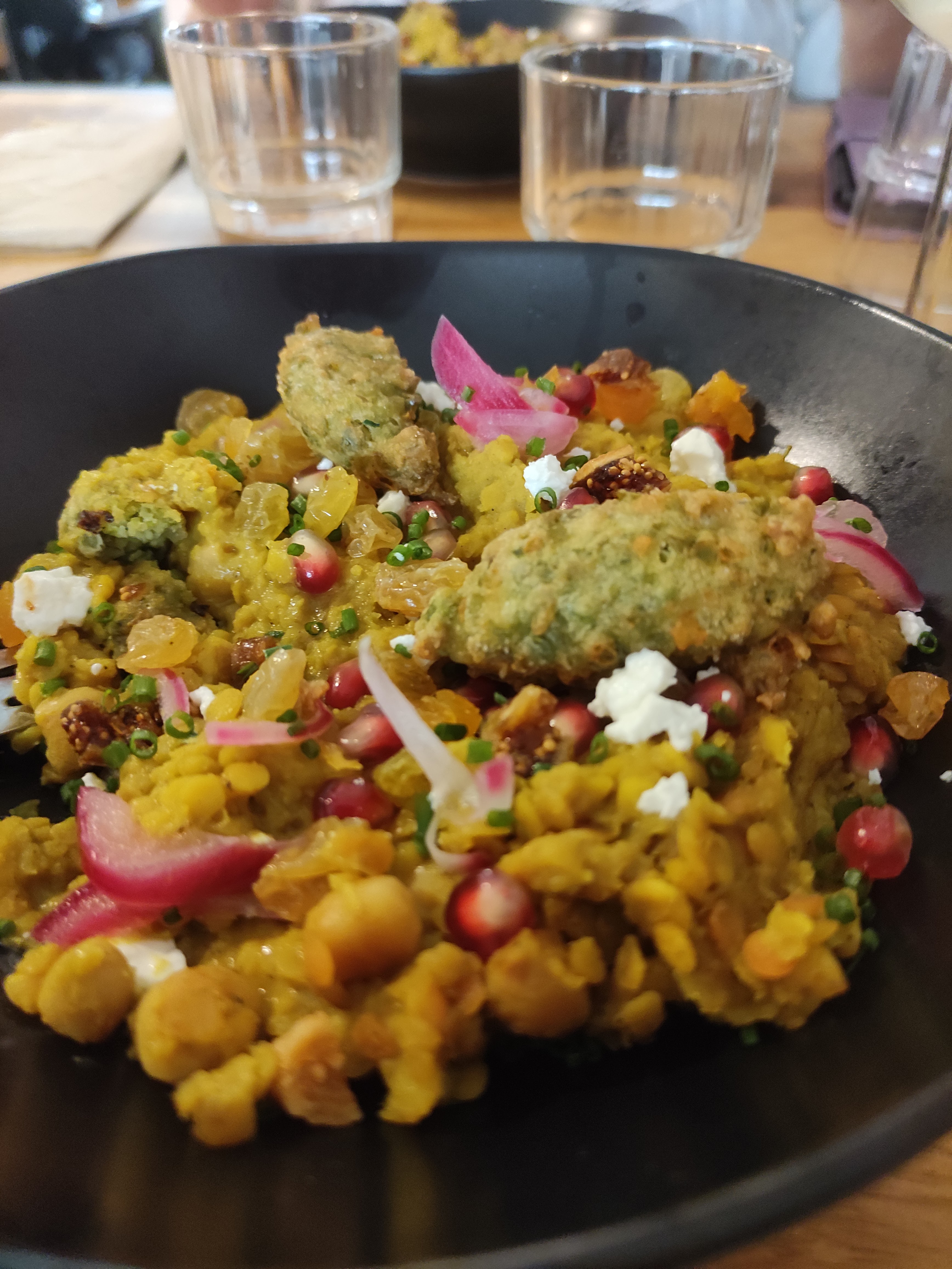 Rapport qualité/prix très correct. Et j'ai jamais mangé de la vie un aussi bon risotto, il est légèrement citronné avec des billes de grenade c'est excellent. Service légèrement long mais très agréable.
