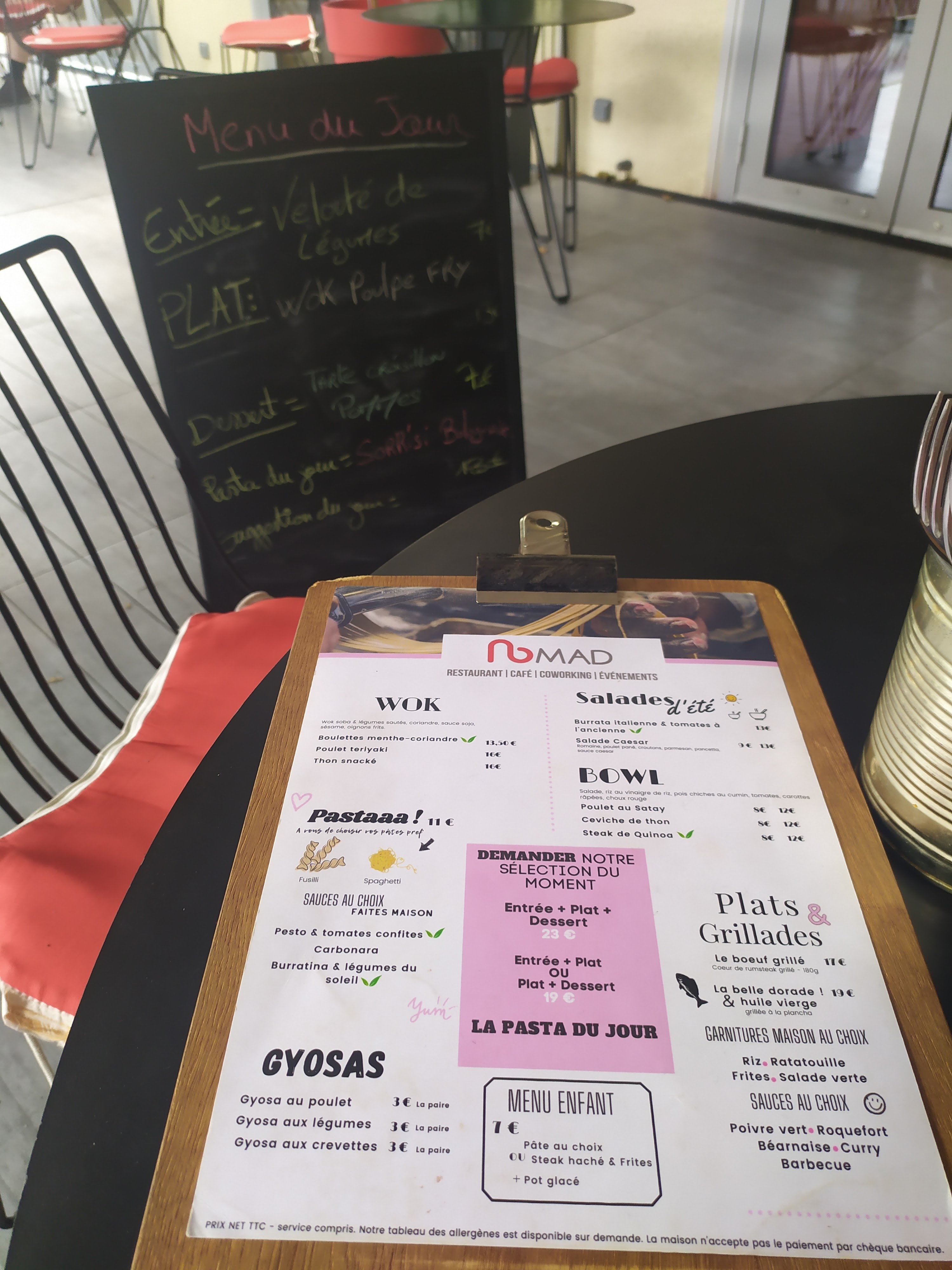 Super lieu 😍 Belle déco. J'ai connu le Nomad grâce aux spectacles d'impro avec Mag&Clem ! Les plats sont goûteux: wok, pasta.. il y a du choix