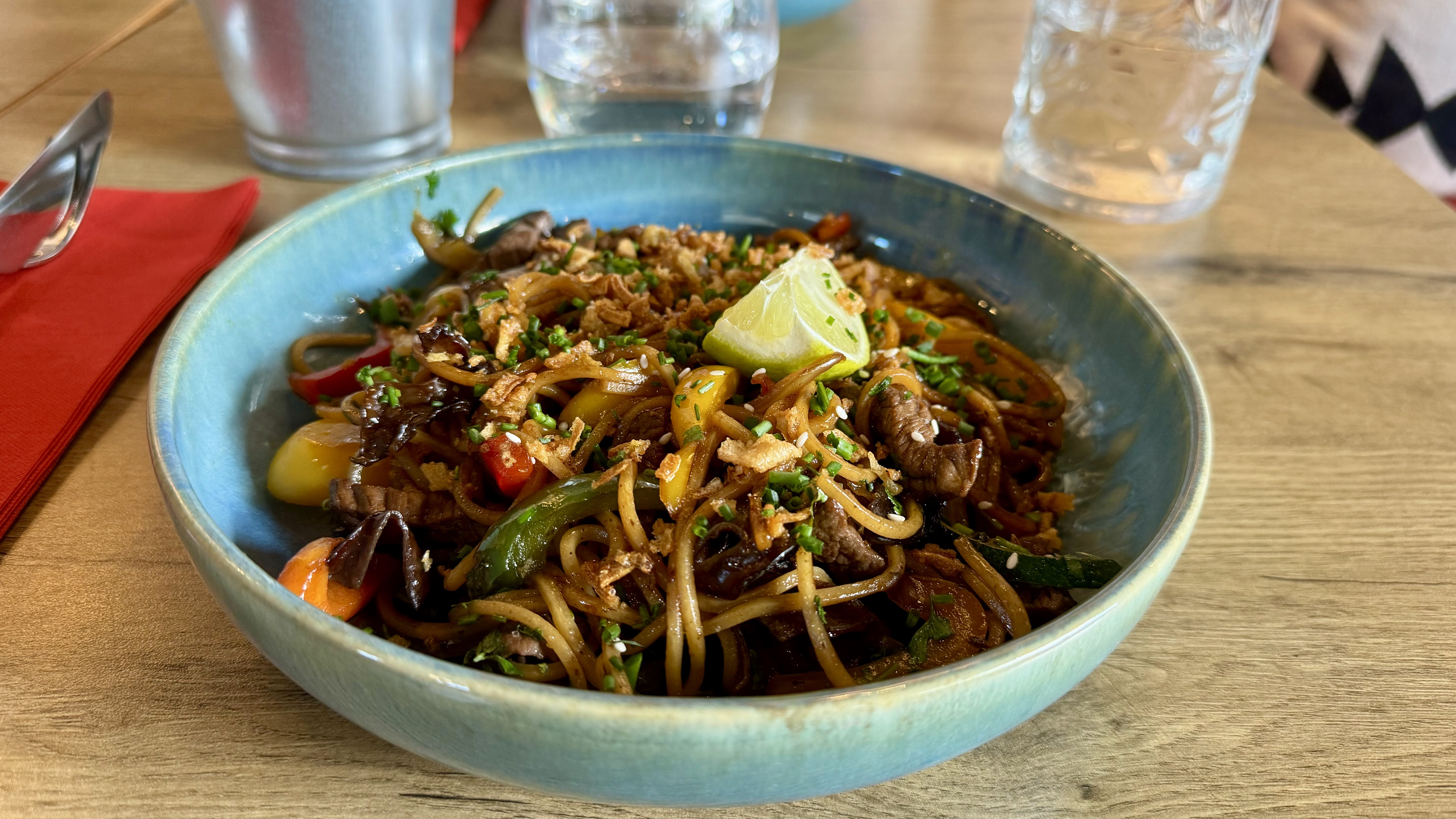 Ne visitez PAS ce restaurant à moins que vous souhaitiez manger des plats de qualité moyenne ou médiocre à des prix ridicules. Leur idée de sauté de poulet est une portion médiocre de nouilles avec 2 tranches de poulet rôti. Le pire, c'est que cela vous coûtera 16 €. La carbonara ressemble à des spaghettis au lait et les gyozas sont au mieux acceptables. Terrible. Mauvaise nourriture trop chère. Il y a plein de meilleurs endroits pour manger à moins de 5 minutes à pied.