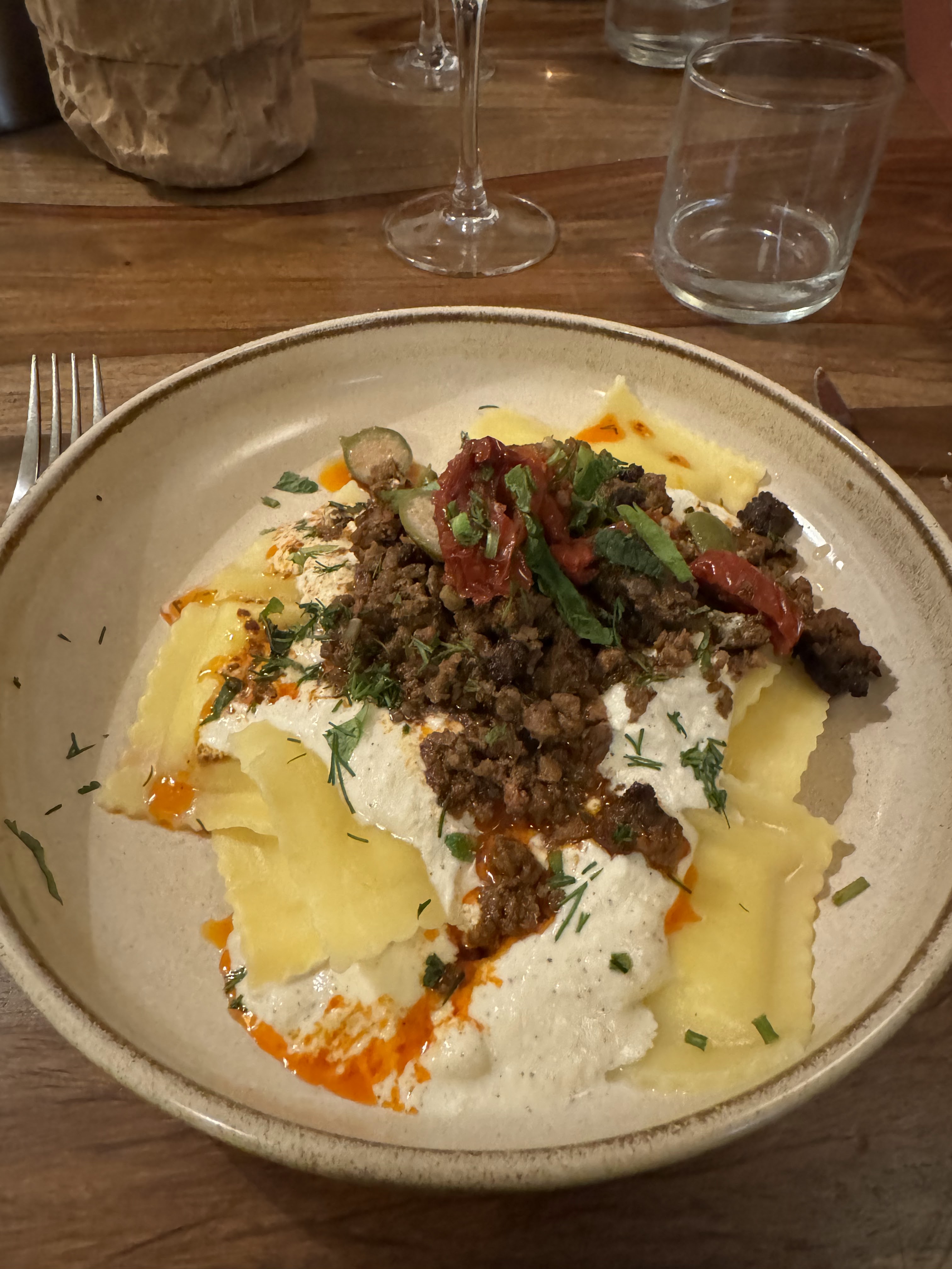 Joli restaurant bien décoré avec une identité propre. Les influences méditerranéennes et moyen-orientales permettent de s'adonner à une multitude de saveurs fortes et riches dans chaque repas. Chaque entrée, plat principal et dessert sont très détaillés avec des ingrédients raffinés. Le Cilbir et la Feta Rotie au Miel étaient très savoureux et appétissants. Les Lasagna Bianca con Zucchine étaient un délice. Un mélange fantastique de textures croquantes et douces nous a apporté une découverte palpitante. La salade de Freekah était bien assaisonnée et savoureuse avec son caviar d'aubergine riche en agrumes. En dessert, nous avons choisi la Tartelette Orientale. Sa crème était marquée d’une étrange amertume, nous n’avons malheureusement pas pu la finir…
