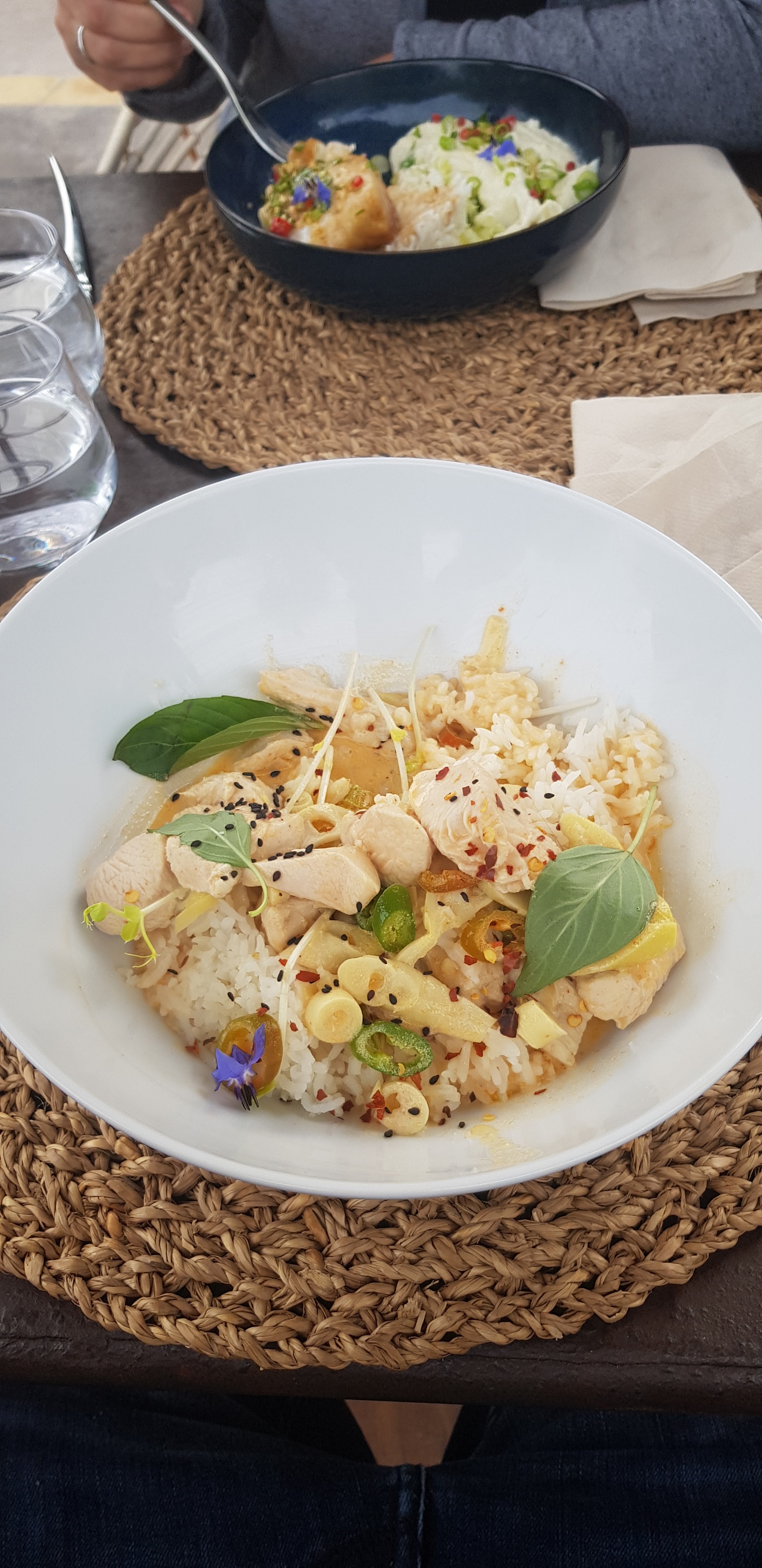 Le lieu tout d'abord, très agréable avec une attention portée à la décoration avec un joli mélange à la fois Asie avec Buddha au centre du patio, Grèce avec ses murs blancs, on nous invite au voyage. Dans l'assiette aussi d'ailleurs.. Excellent tigre qui pleure, très bon curry vert, dessert très honnête mais moins surprenant autour du chocolat. Service attentionné mais discret. On a passé un très bon moment à cette table. Merci
