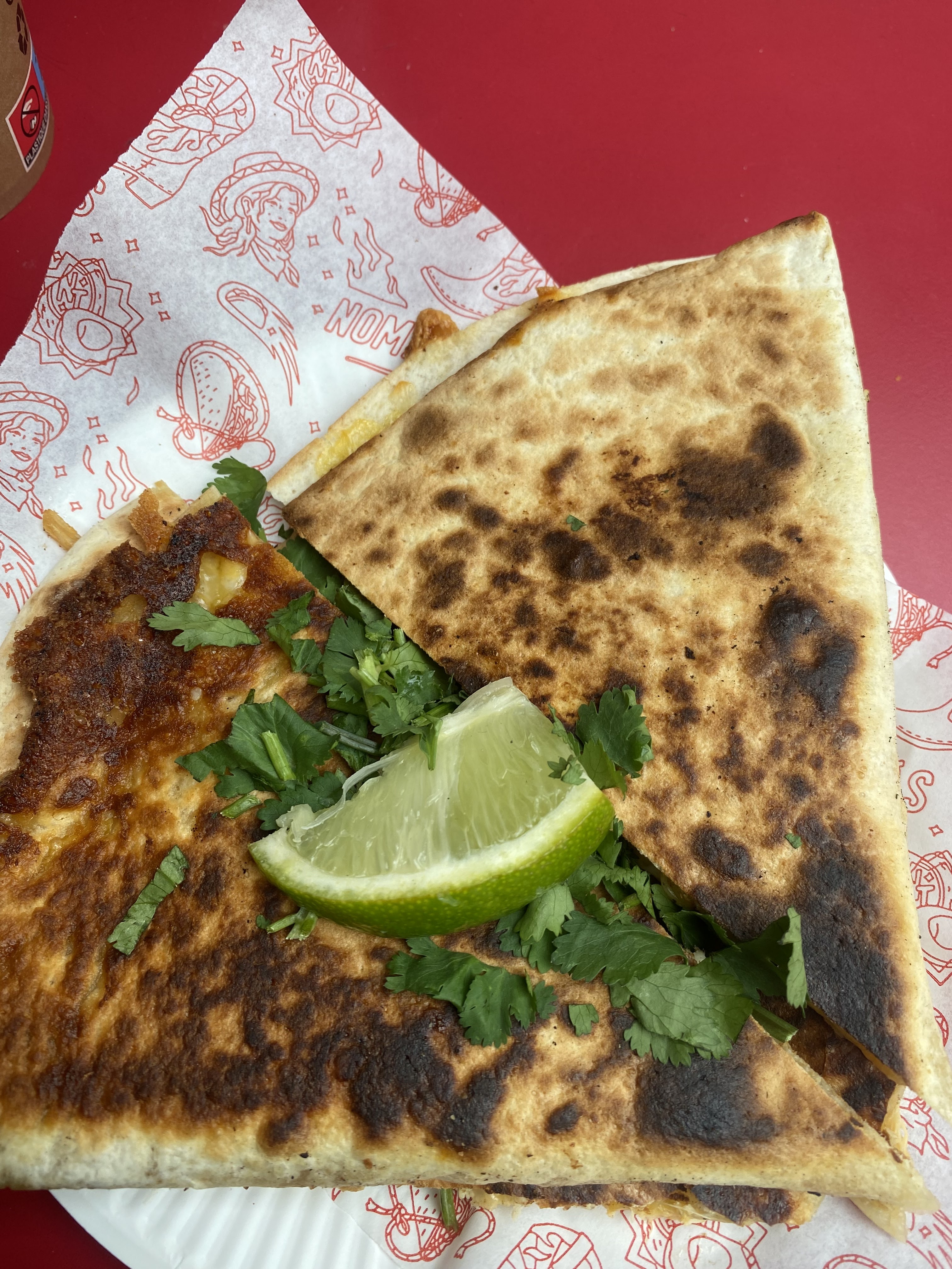 👌 CE QUI FAIT LA DIFF' ⤵︎ 🫓 Ce coté cheeeeesy de dingue ! ----------- 🫓 Ce qu’on aime dans une quesadillas, c’est que ce soit cheesy au max ! Ça tombe bien, chez Nomas Tacos, on est sur du cheddar et de la mozzarella fondants à mooort ! À ça t’y ajoutes du poulet fermier effiloché, une pointe de piquant, et ça donne ce genre de quesadillas qu’on kiffe ! Buen provecho ! ----------- Dans cette quesadillas il y a : 🫓 Galette de blé 🍗 Poulet fermier effiloché 🧀 Cheddar fondu ⚪️ Mozarella fondue 🔴 Sauce chipotle ❤️ Que du kiffe ——— L’endroit idéal pour te faire kiffer les spécialités mexicaines ! Alexis le fondateur, a confectionné ses recettes de tacos, quesadillas et burritos en s’inspirant de ses voyages ! Et c’est un pur kiffe ! Pour une petite virée au soleil en plein Paris, Nomas Tacos est l’adresse que tu dois absolument tester !