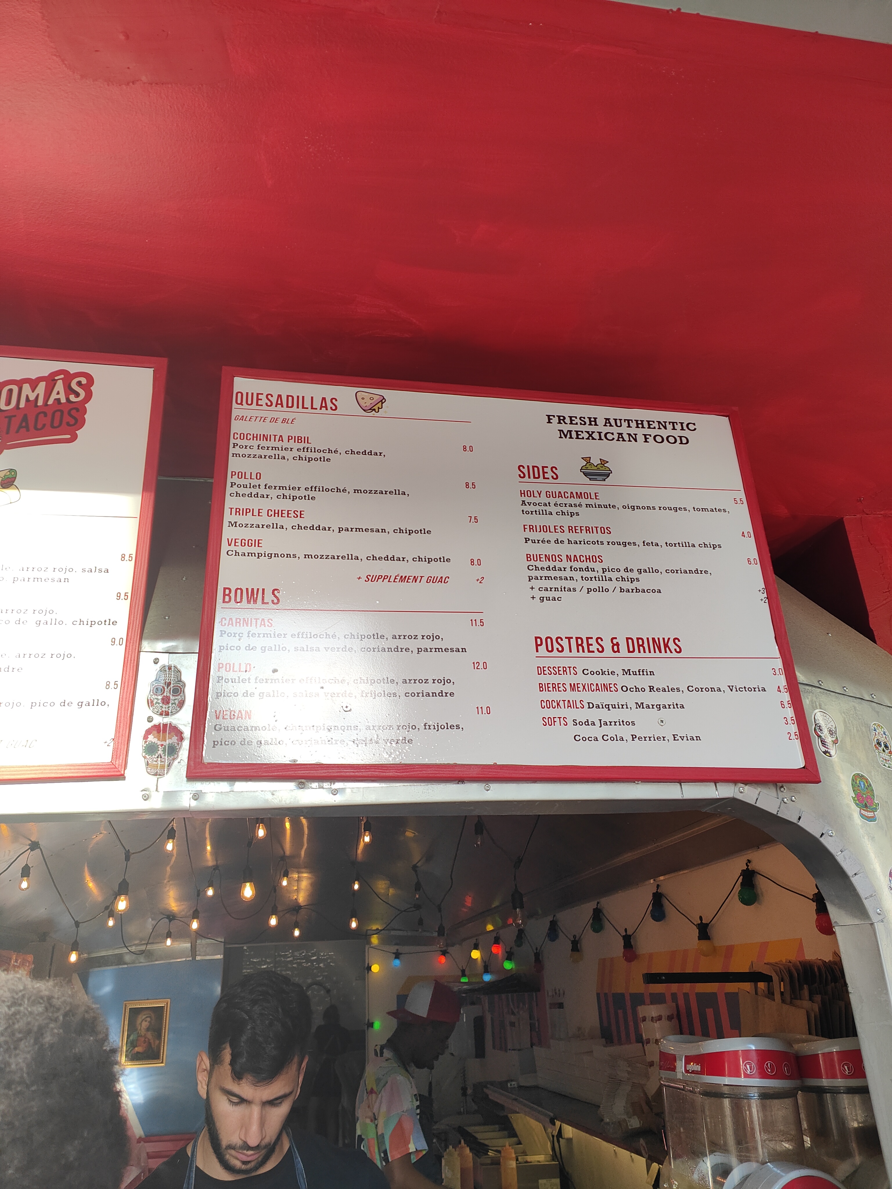 J'ai mangé deux fois ici. La première j'ai pris un burrito je vous conseille fort. La deuxième fois j'ai pris des quasadillas avec des chips guacamole a côté. Je suis vraiment pas déçue le personnel est adorable et j'ai vraiment bien mangé ces deux fois. Je reviendrais souvent je pense.